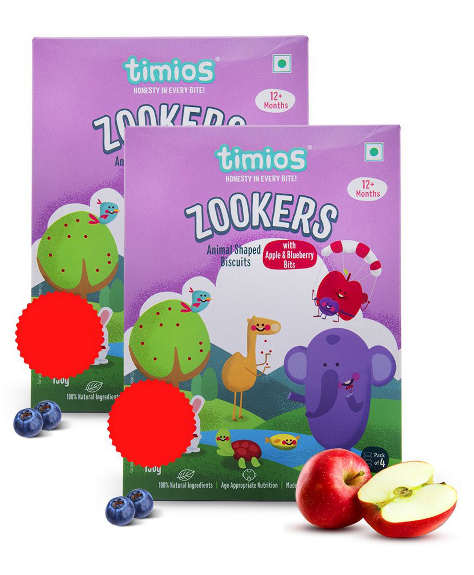 Timios Zookers Apple & Blueberry Biscuits 150 gm - Pack of 2