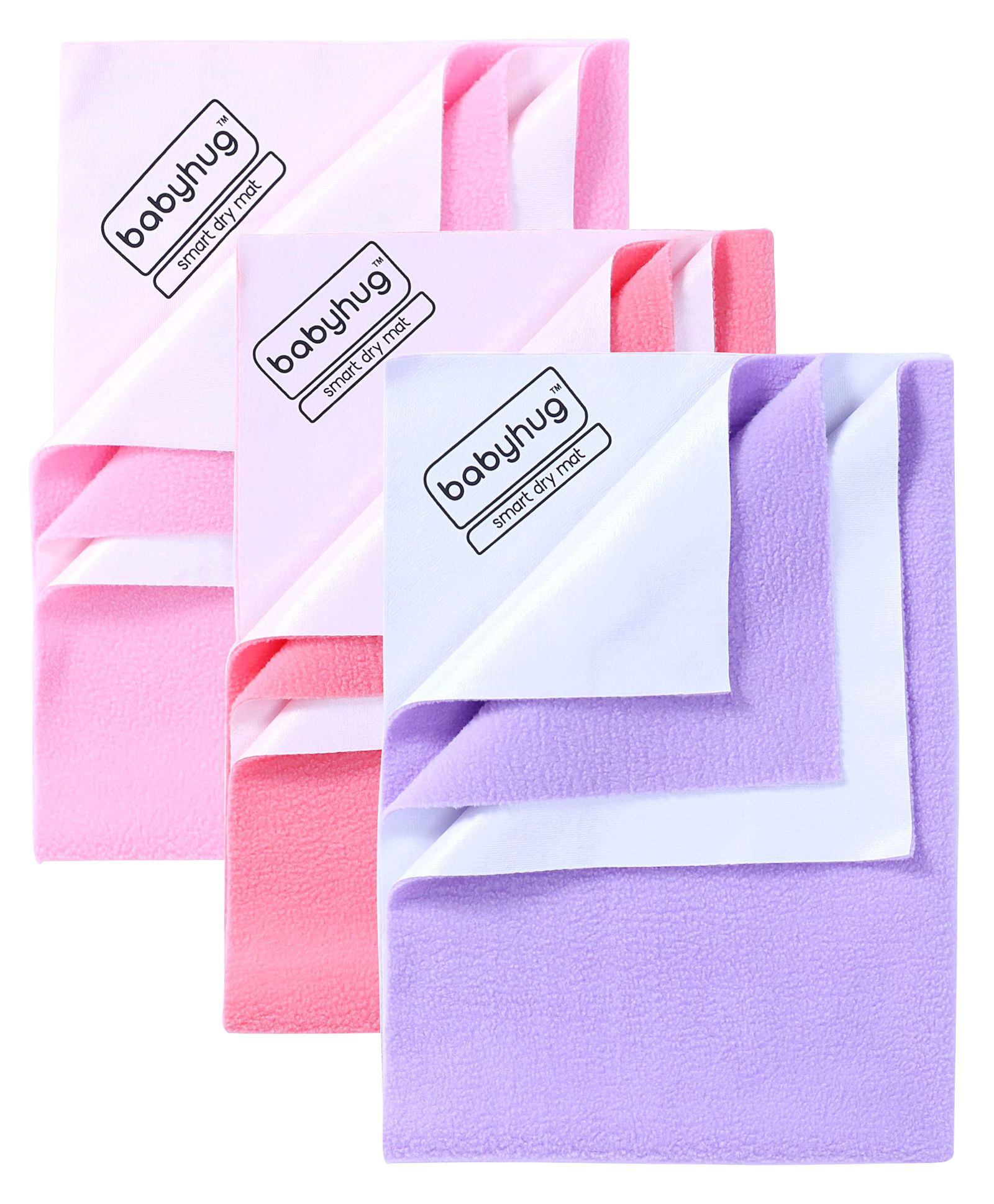Babyhug Smart Dry Bed Protector Sheet Set of 3 - Large (Pink, Saloman & Lilac)