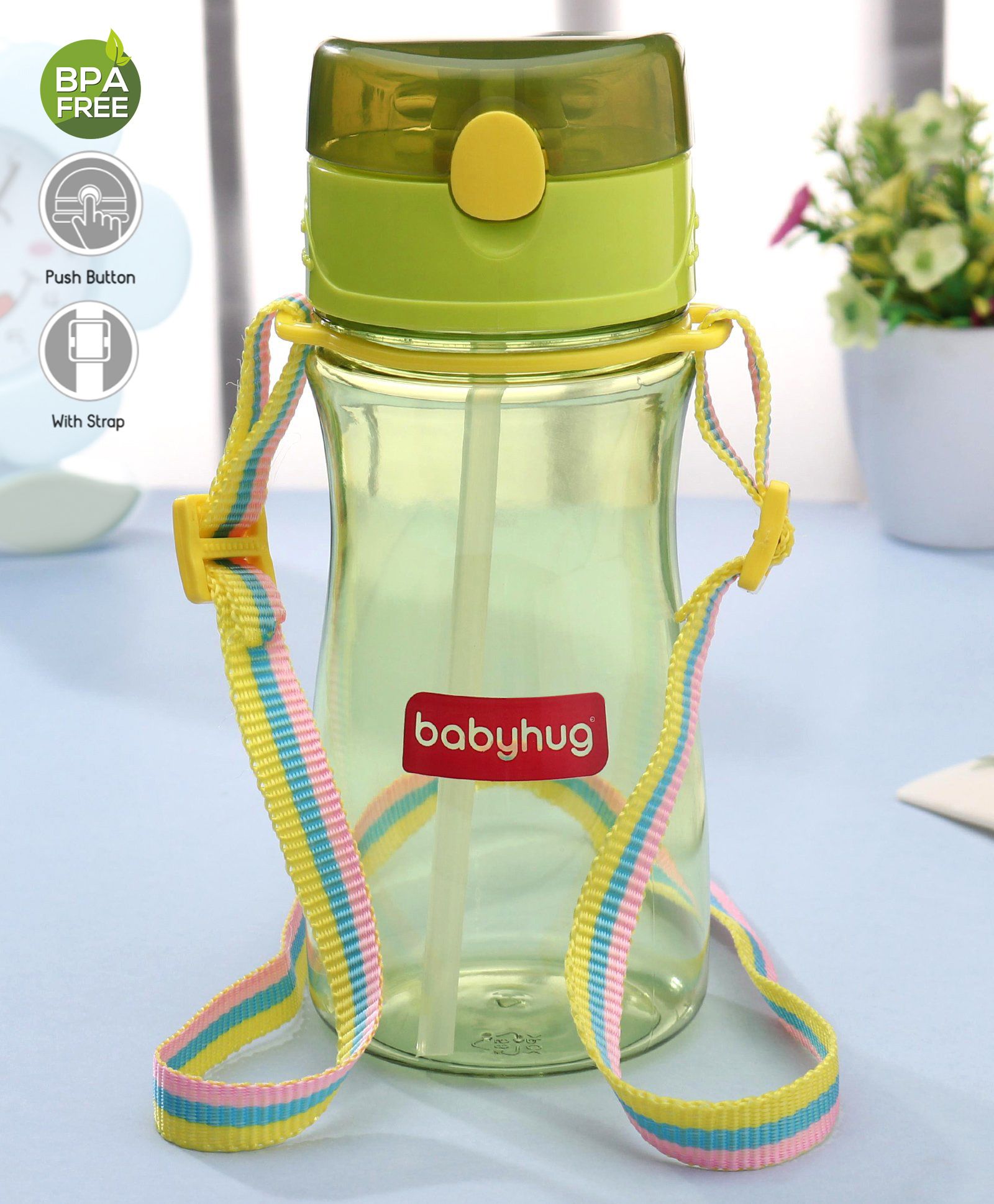 Babyhug Straw Sipper with Carrying Strap Green - 400 ml