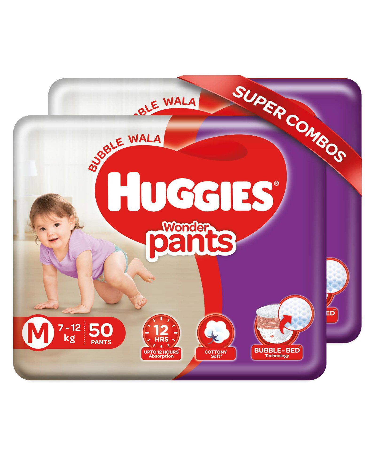 Huggies Complete Comfort Wonder Pants, India's Fastest Absorbing Diaper | M Size, 100 Diapers