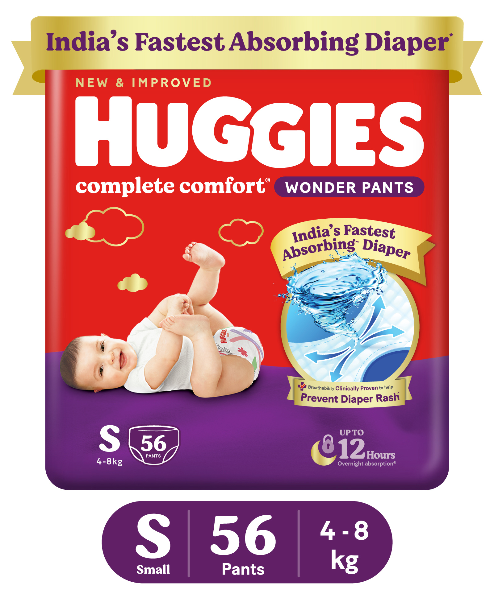 Huggies Complete Comfort Wonder Pants, India's Fastest Absorbing Diaper | S Size, 56 Diapers