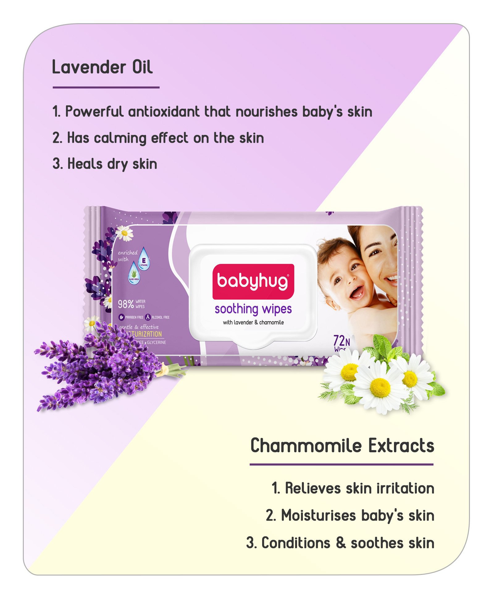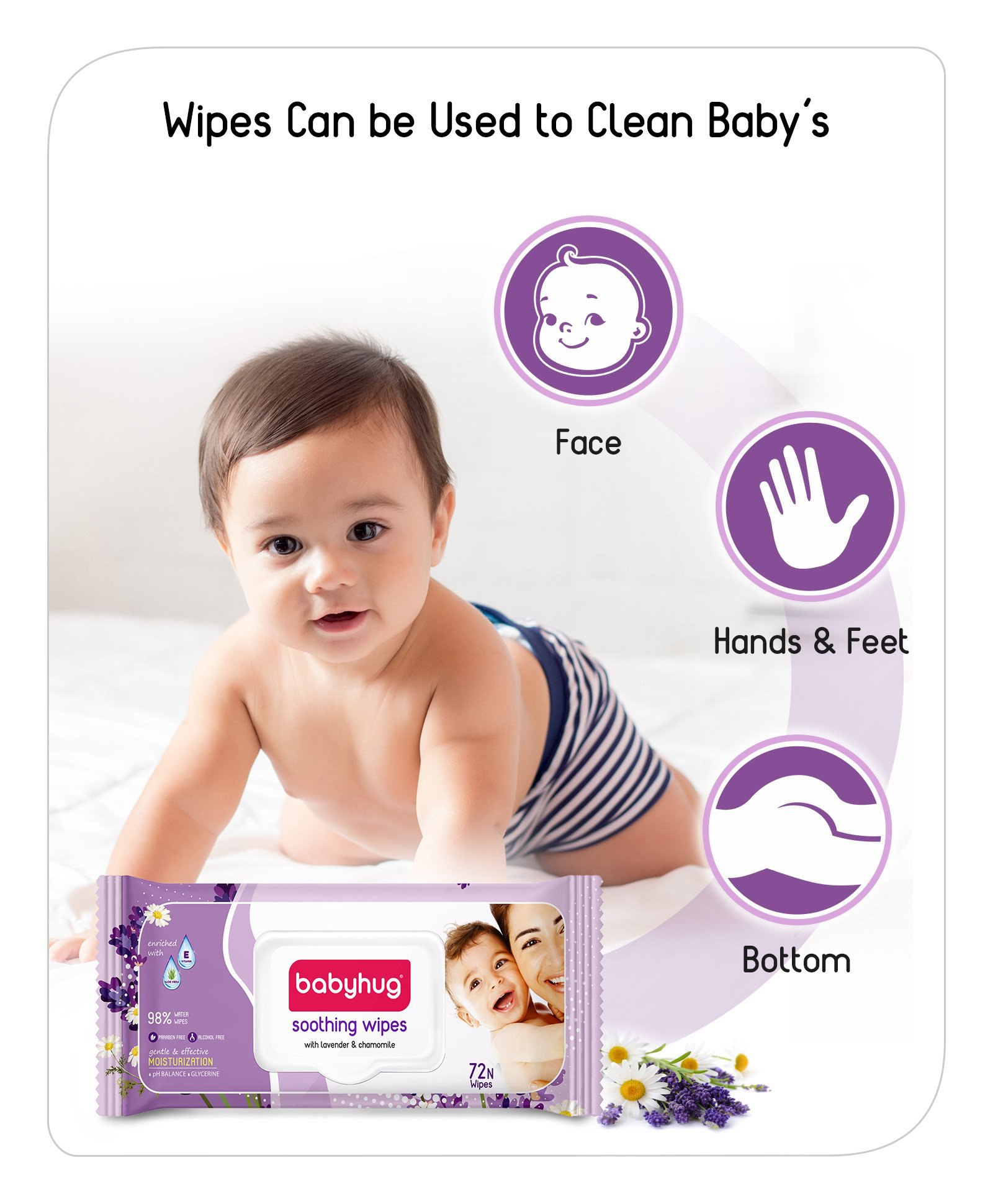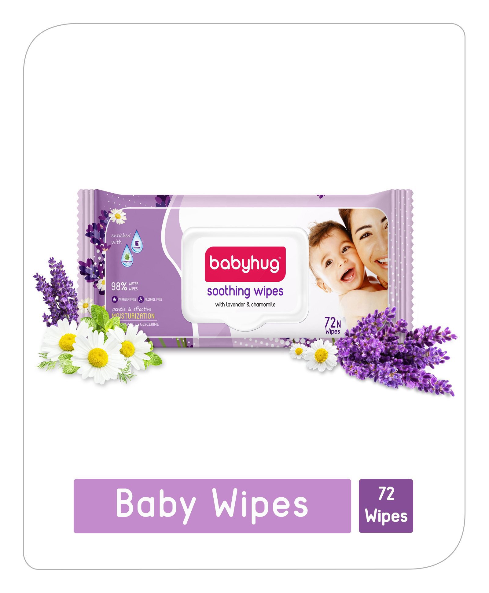 Babyhug 98% Water Soothing Lavender & Chamomile Baby Wet Wipes - 72 Pieces