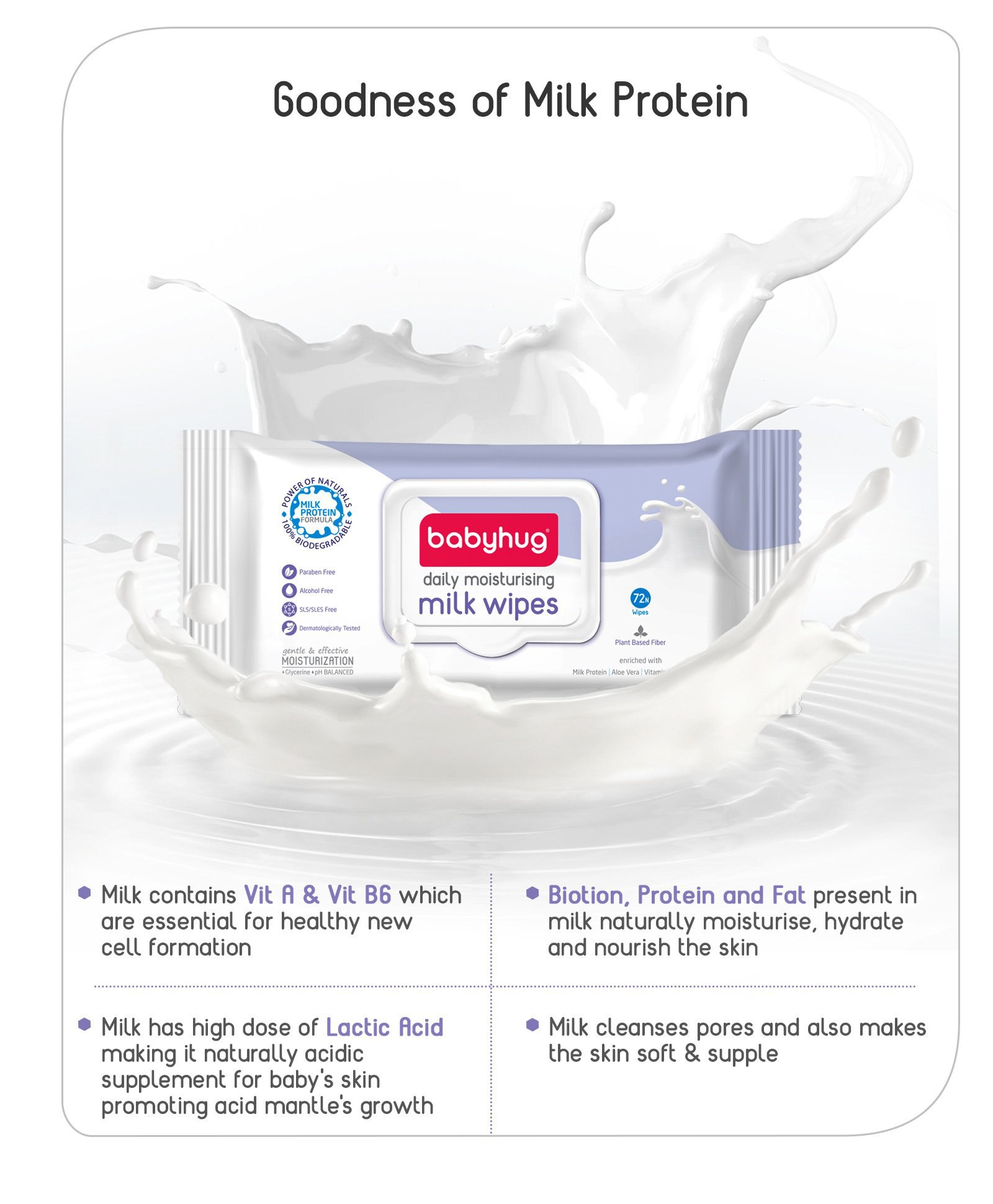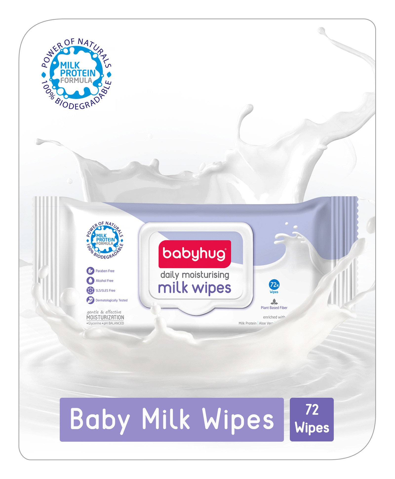 Babyhug Milk Daily Moisturising Baby Wet Wipes 98% Water - 72 Pieces