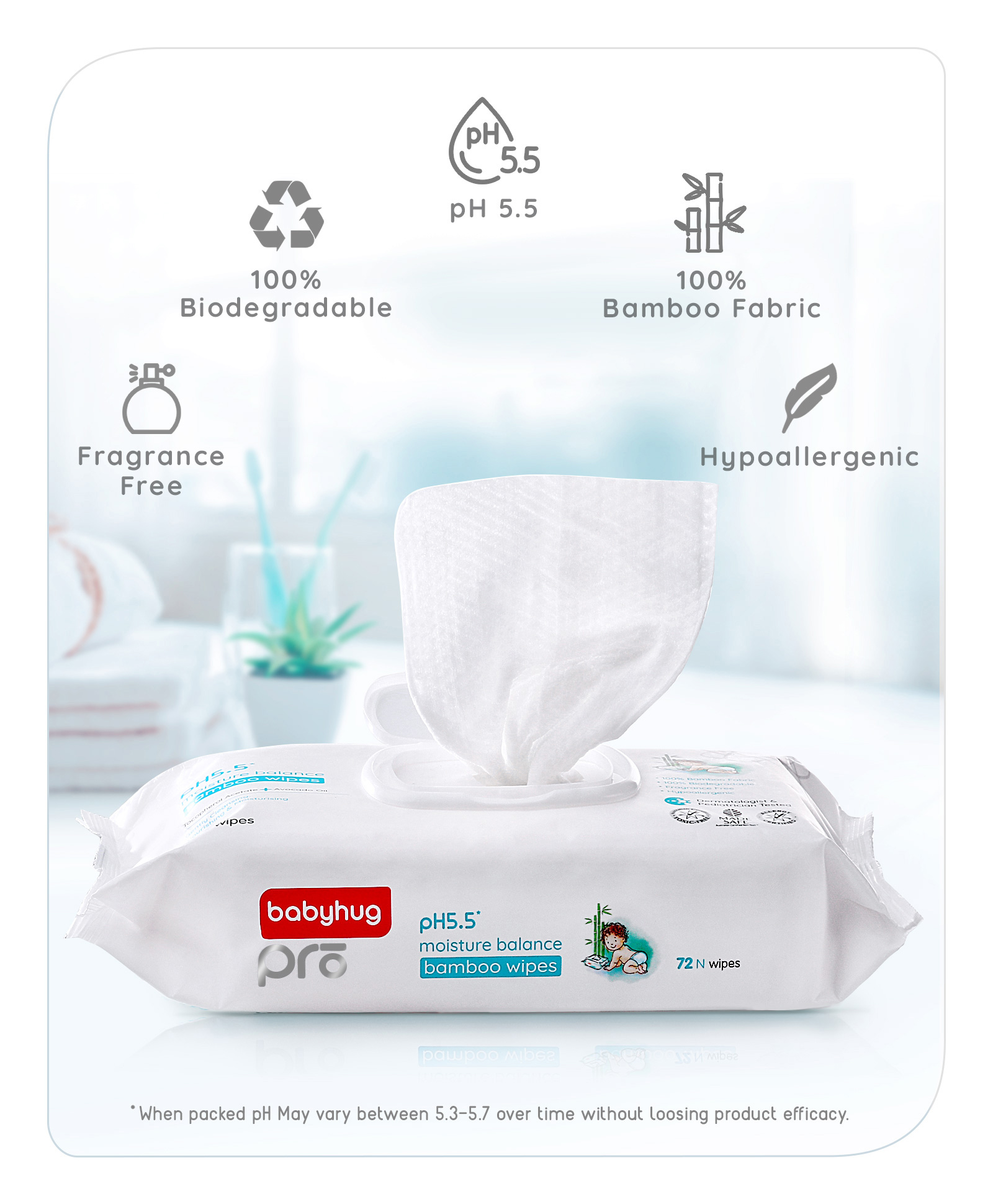 Babyhug Pro 98% Water pH 5.5 Moisture Balance Bamboo Wipes - 72 Pieces
