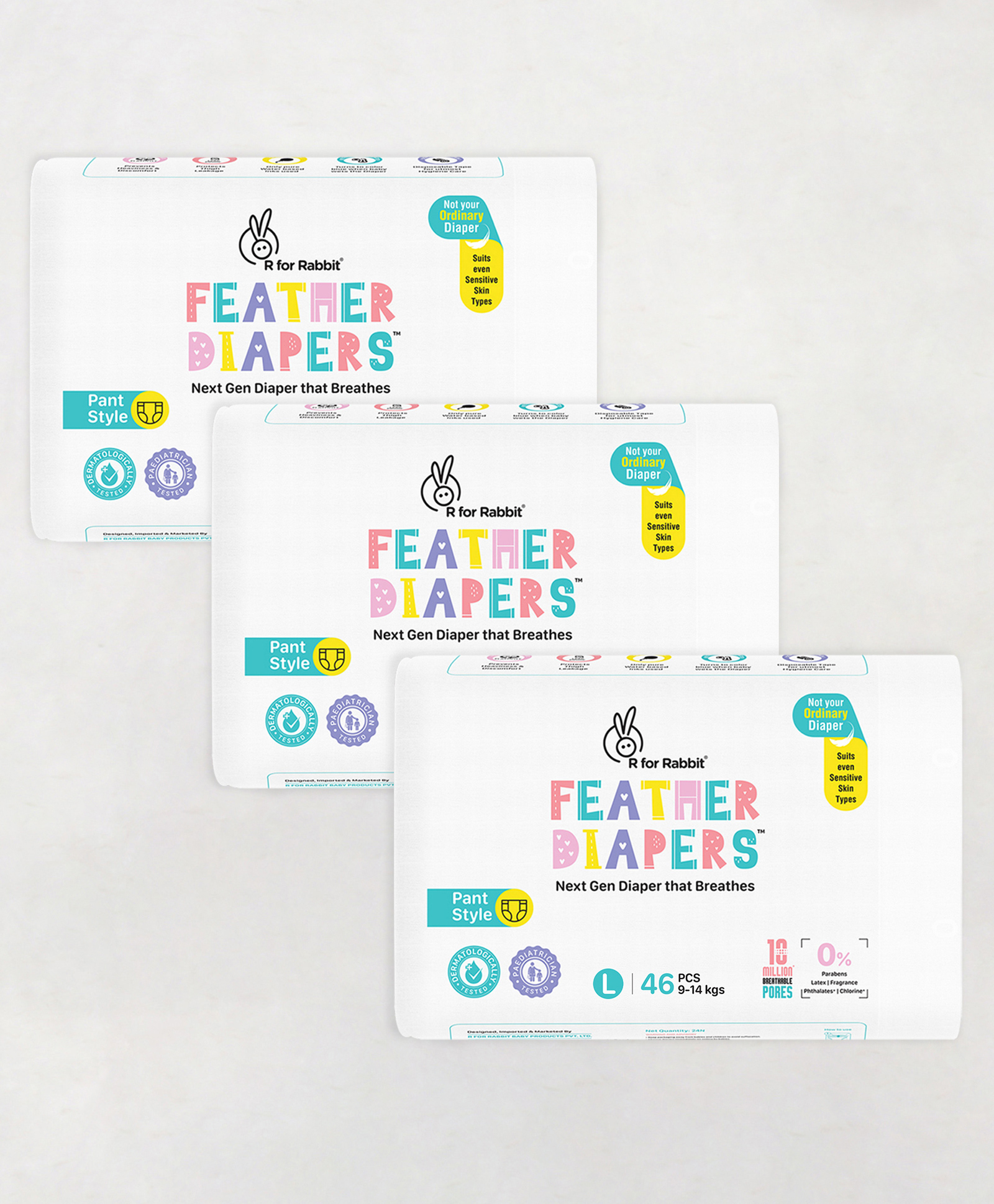 R for Rabbit Large L Size Premium Feather Diaper for Baby 9 to 14 kgs (46 Combo Pack Offer)