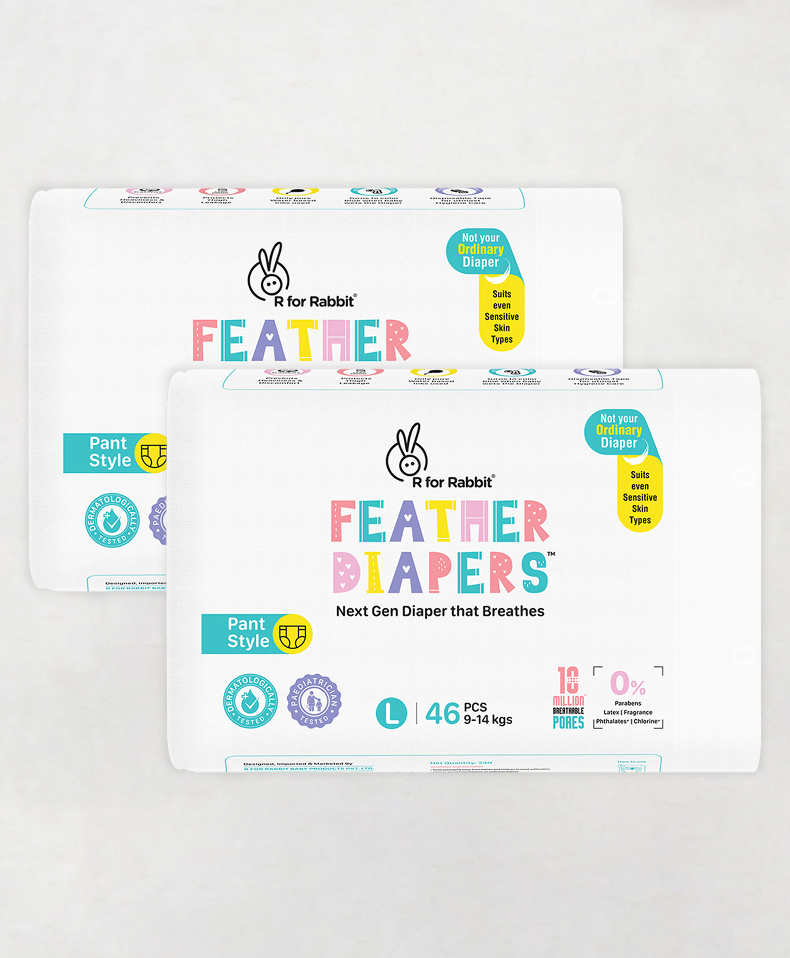R for Rabbit Feather Diaper Pants Size L-Large for baby of 9-14 kgs - 46 Pieces (Pack of 2)