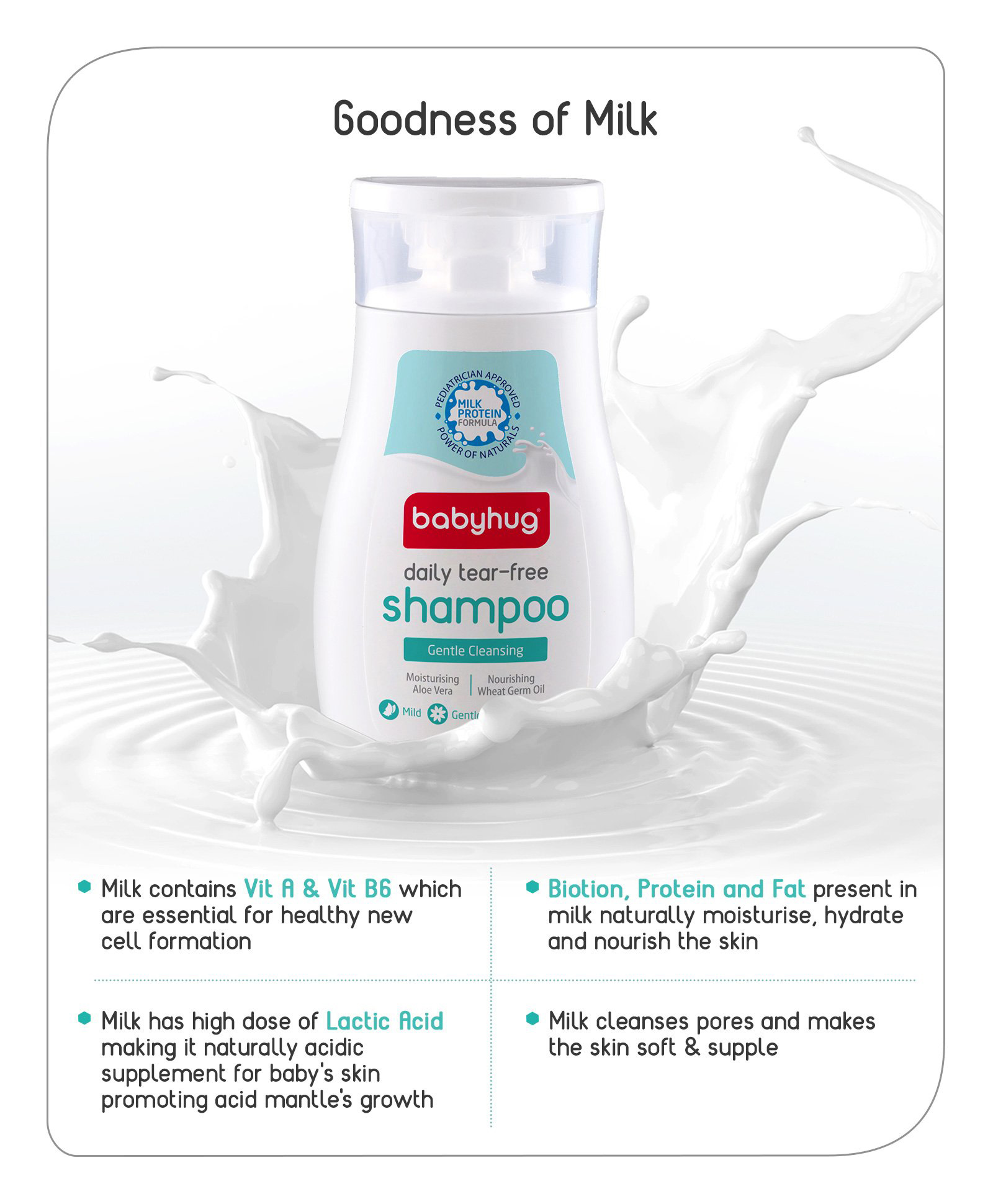 Babyhug Milk Protein Formula Daily Tear Free Milky Shampoo Ideal For Newborn Baby'S Delicate Scalp - 100 ml