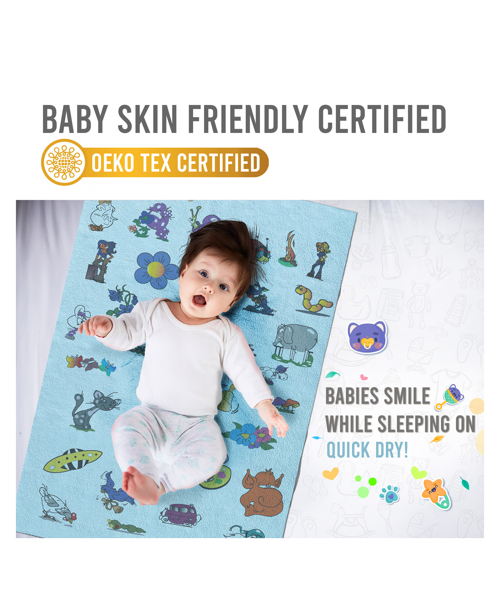 Quick Dry Small Baby Bed Protector Sublimation Animals & Toys Print - Sky Blue (Pack of 2)
