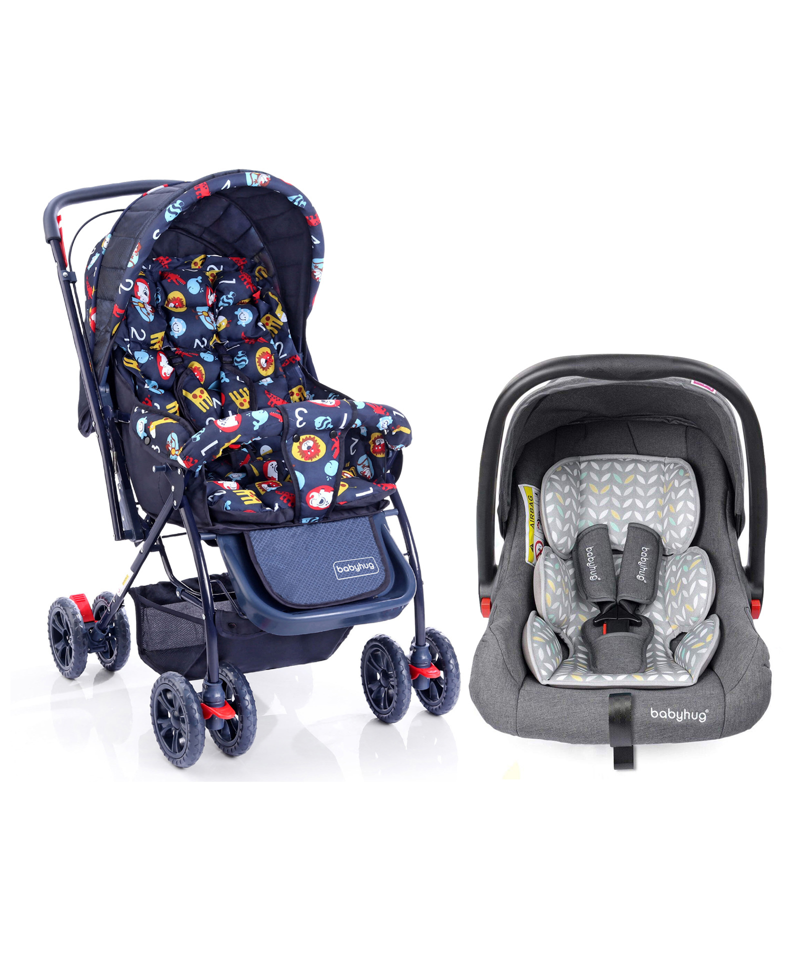 Babyhug Amber Car Seat Cum Carry Cot With Rocking Base & GreyBabyhug Cosy Cosmo Stroller With Reversible Handle & Back Pocket - Navy Blue