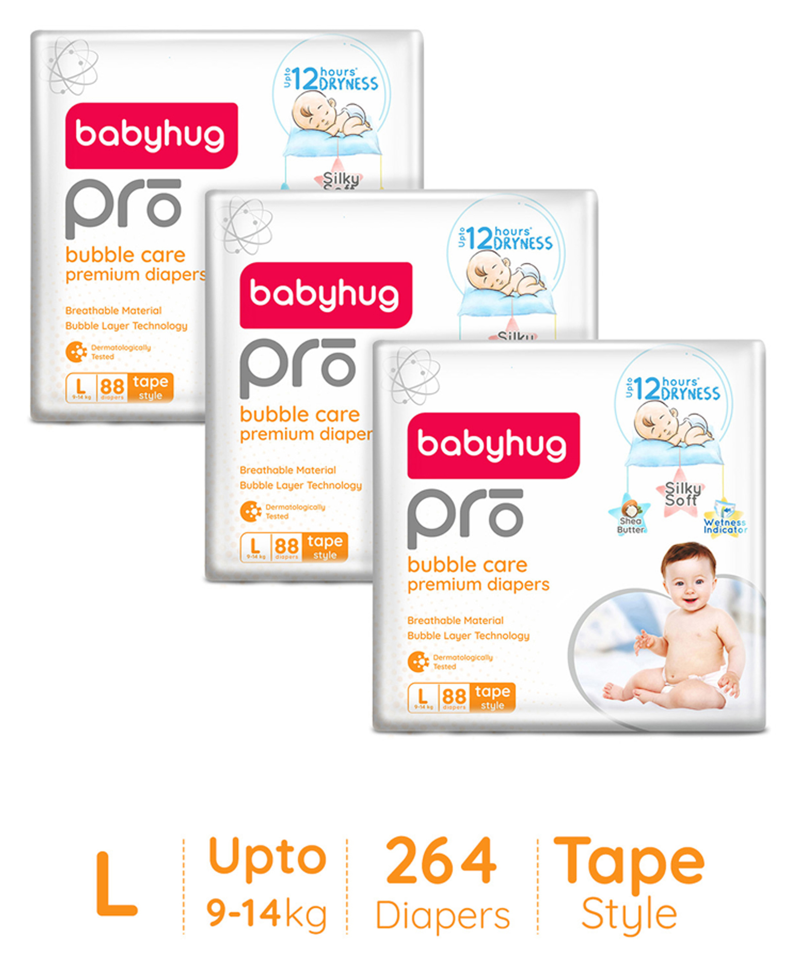 Babyhug Pro Bubble care premium Tape Style Diaper Large - 88 Pieces -(Pack of 3)