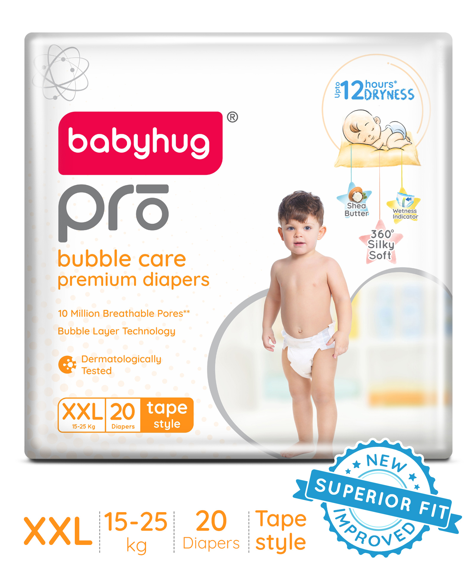 Babyhug Pro Bubble Care Premium Tape Style Diaper XXL - 20 Pieces - New & Improved Superior Fit