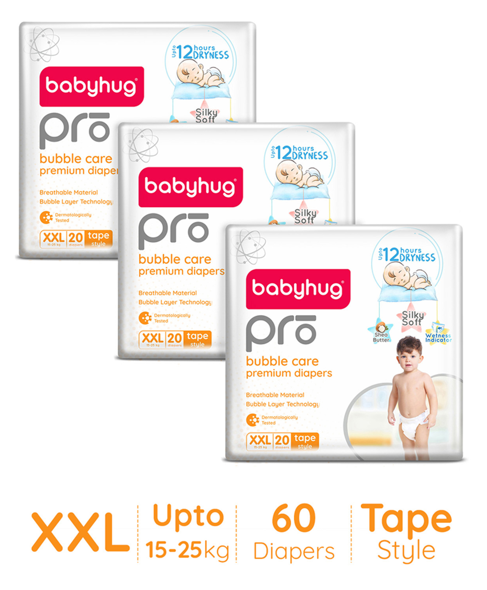 Babyhug Pro Bubble care premium Tape Style Diaper XX Large - 20 Pieces -(Pack of 3)