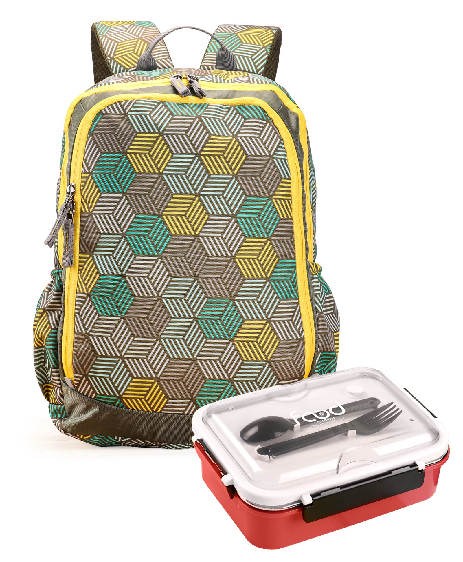 Buy Pine Kids School Backpack Cubes Print with Stainless Steel Lunch Box - Multicolor Online at FirstCry.com