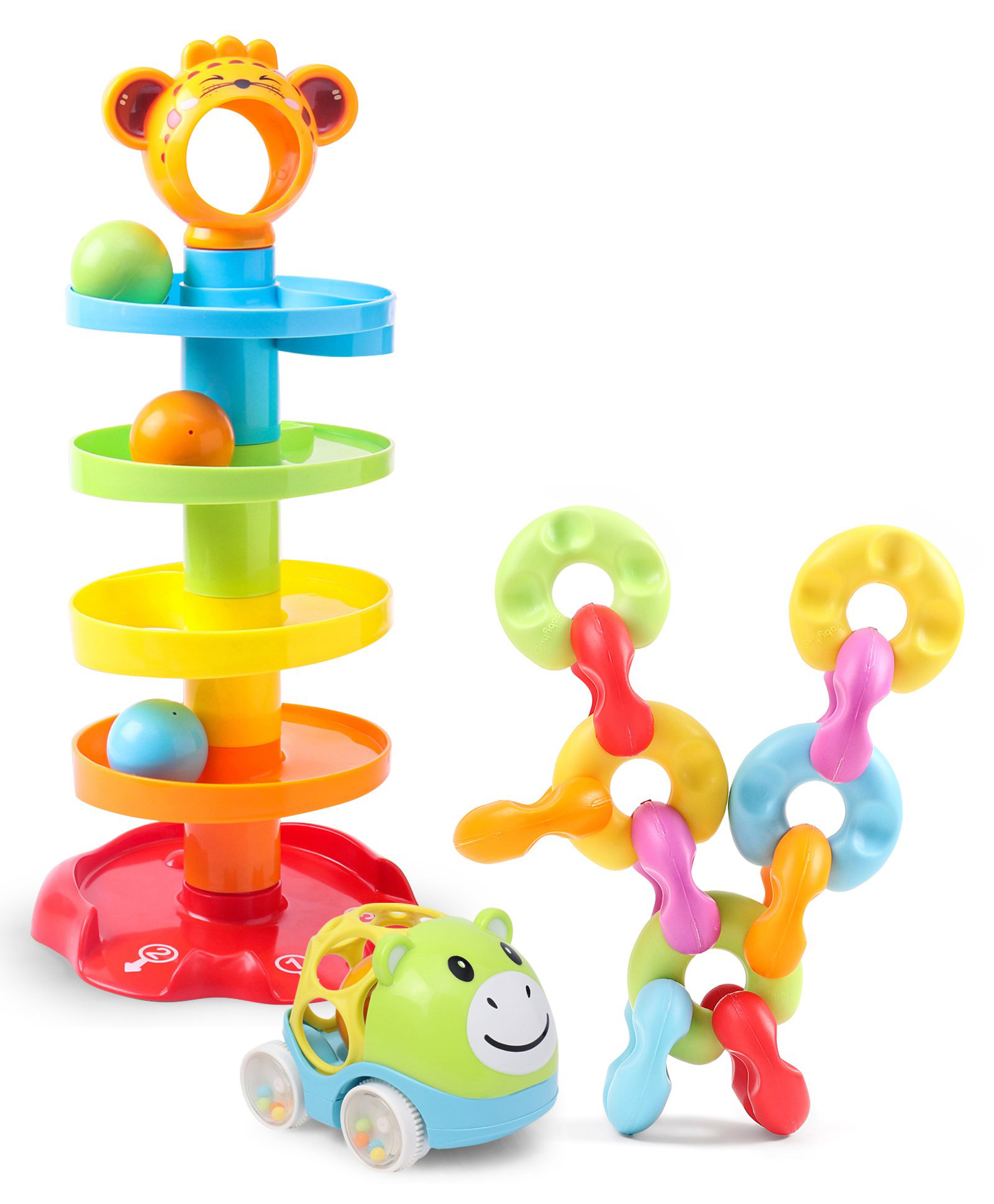 Babyhug Premium 5 Layer Tiger Roll Ball Toy| Drop and Roll Swirling Tower| Educational and Activity Montessori Pre-School Toy| Stack, Drop and Go Ball Ramp Toy|3 Spinning Balls |BIS Certified| Non-toxic