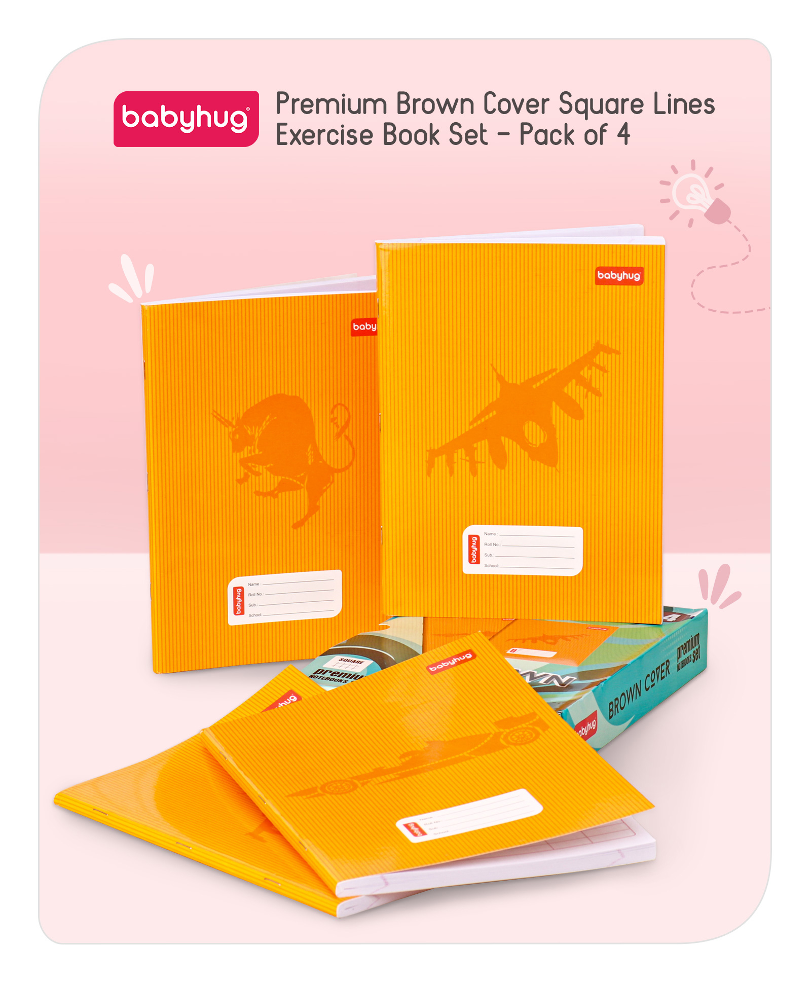 Babyhug Premium Brown Cover Square Lines Exercise Book Set Pack of 4 - 172 Pages Each