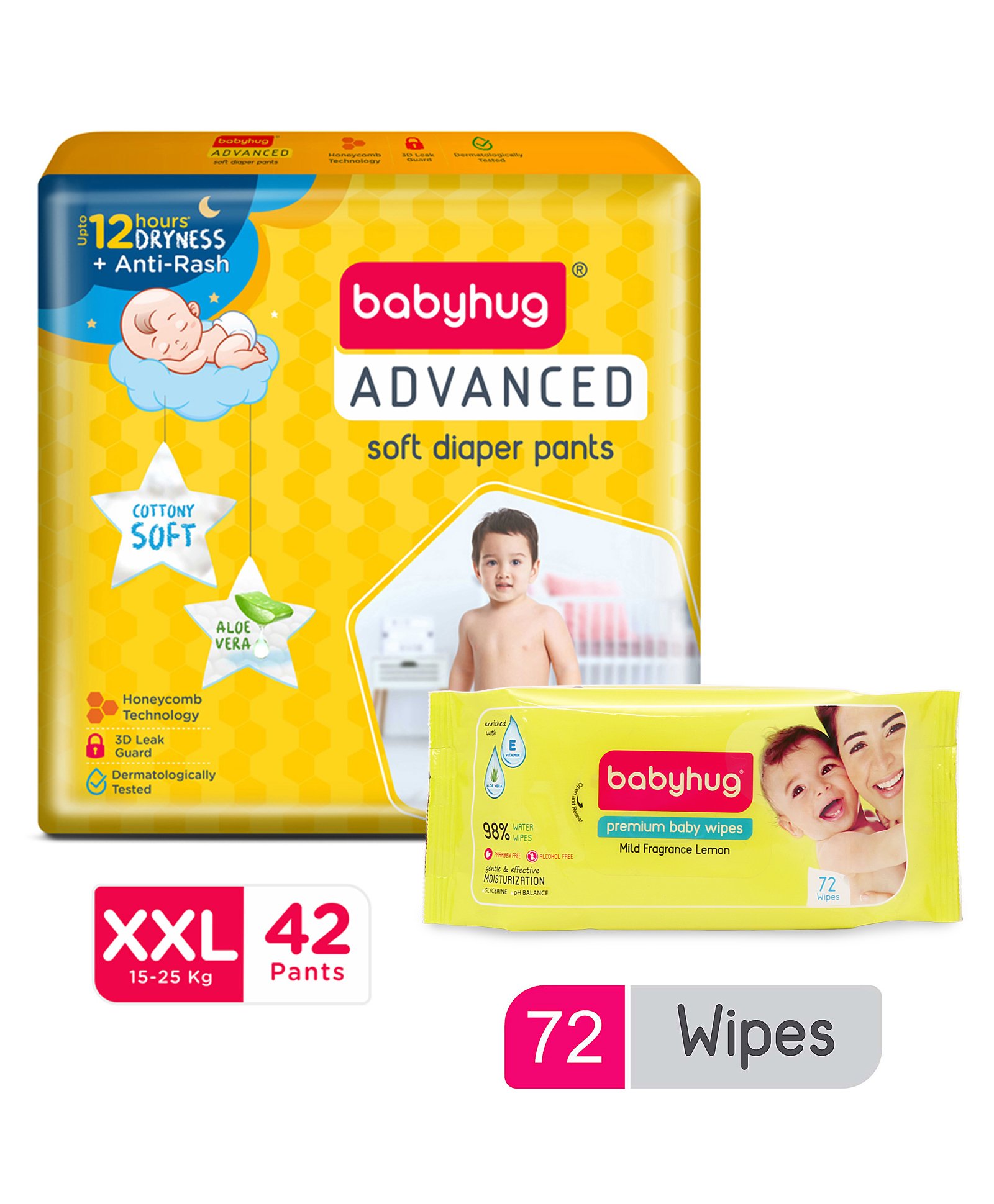 Babyhug Advanced Pant Style Diapers XXL - 42 Pieces & Babyhug Premium Baby Lemon Wipes - 72 Pieces