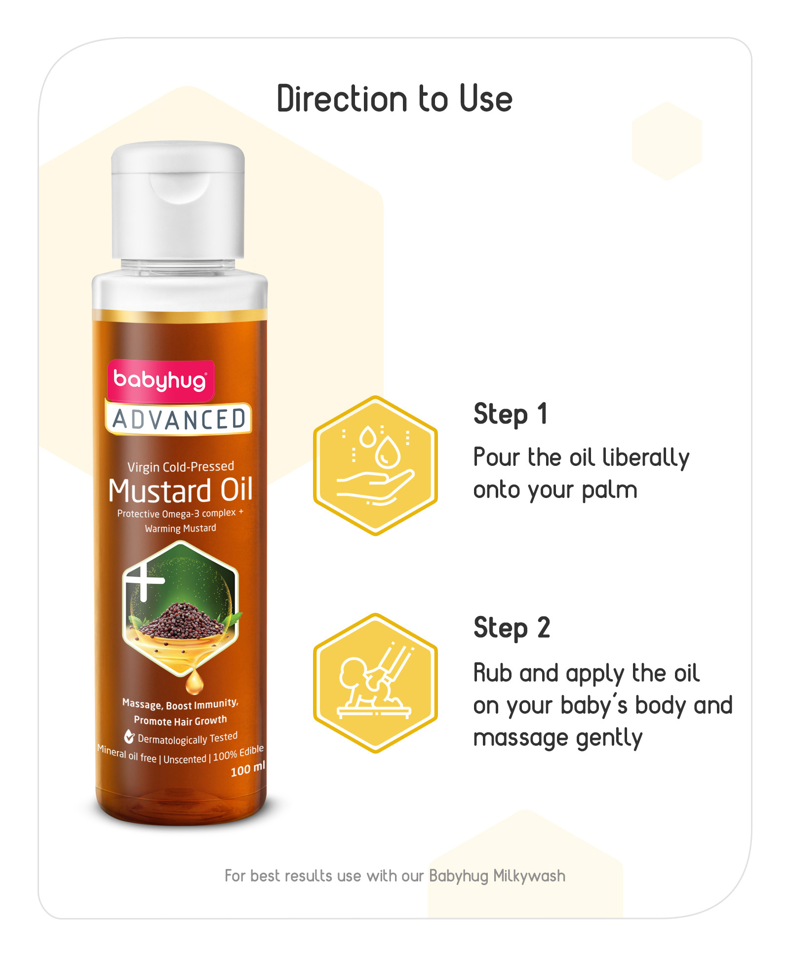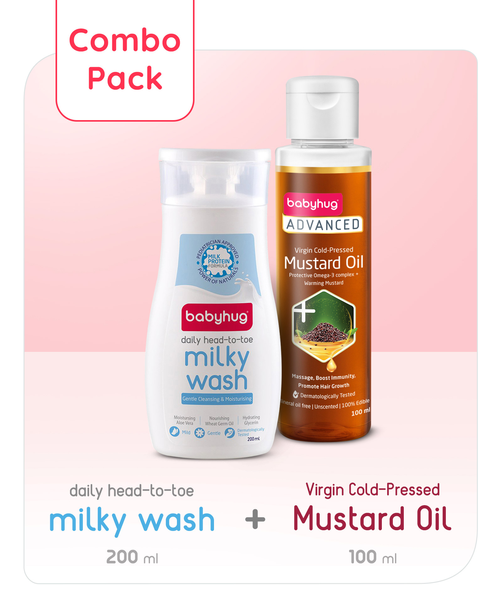 Babyhug Advanced Cold Pressed Extra Virgin Mustard oil 100 ml & Babyhug Daily Head To Toe Milky Wash - 200 ml