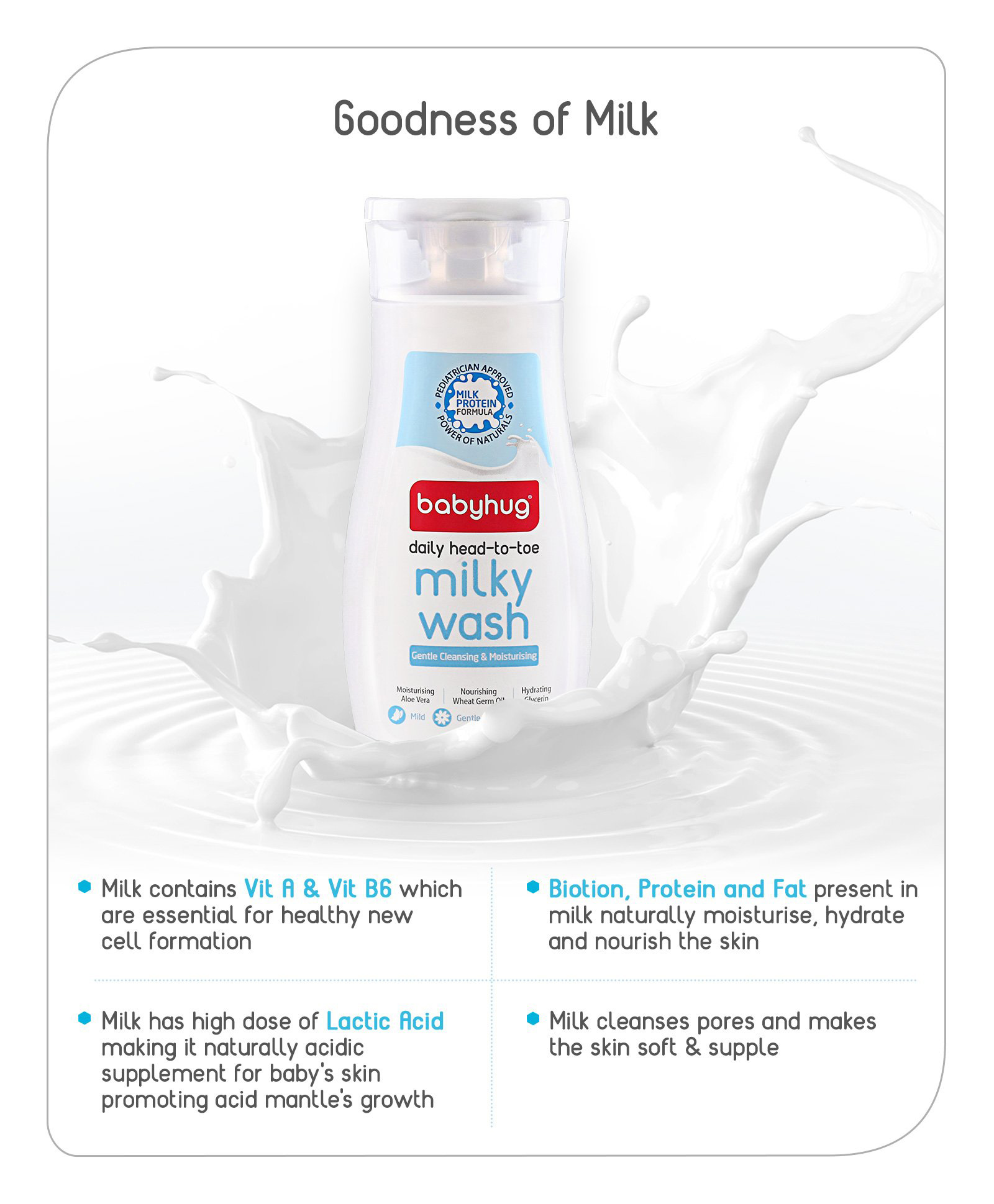 Babyhug Milk Protein Formula Daily Head To Toe Milky Wash No Tear Formula For Newborn Baby 2 In 1 Shampoo & Body Wash - 200 ml