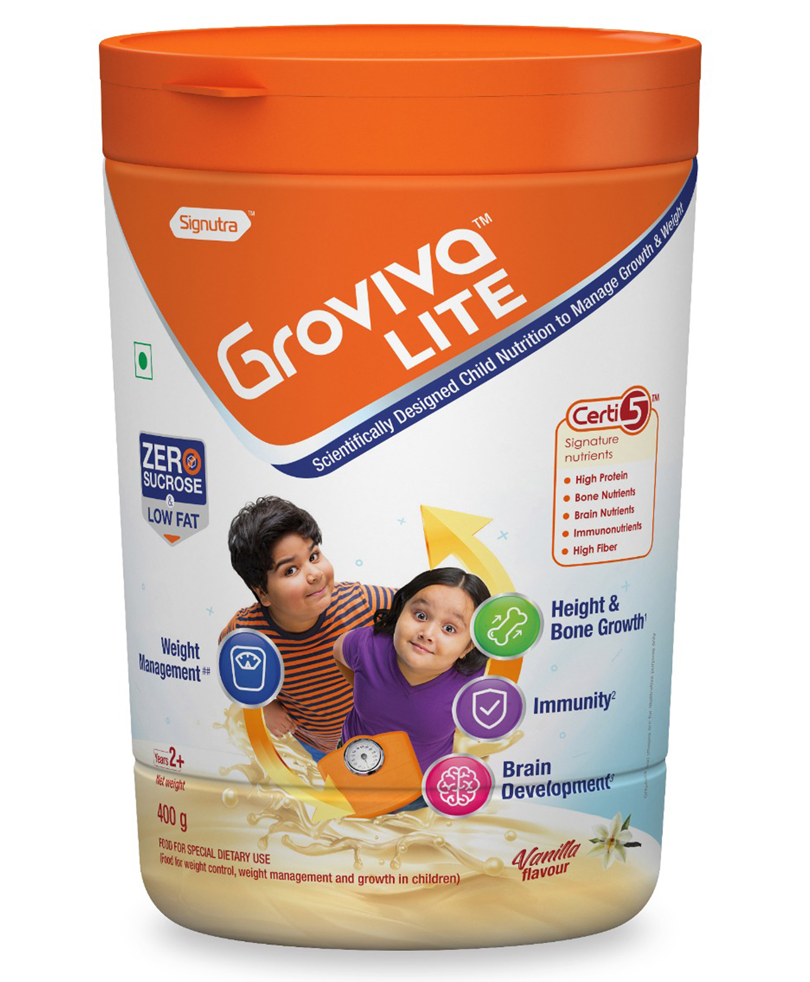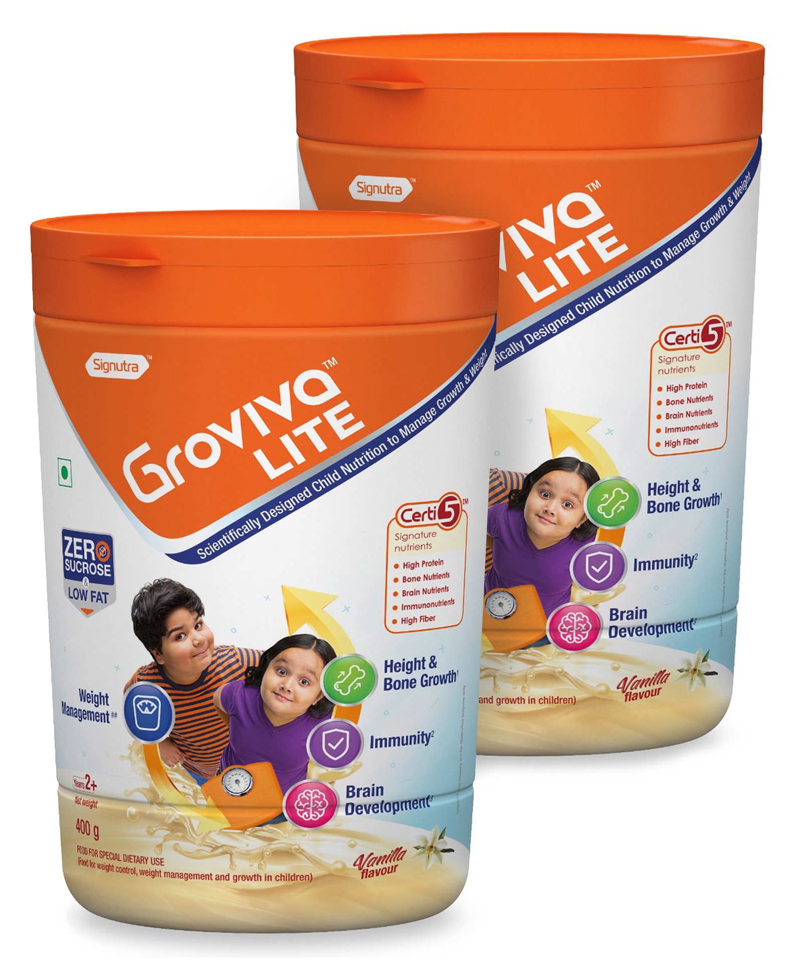 Groviva Lite Vanilla Flavour Nutrition Supplement Jar - 400 gm- Pack of 2