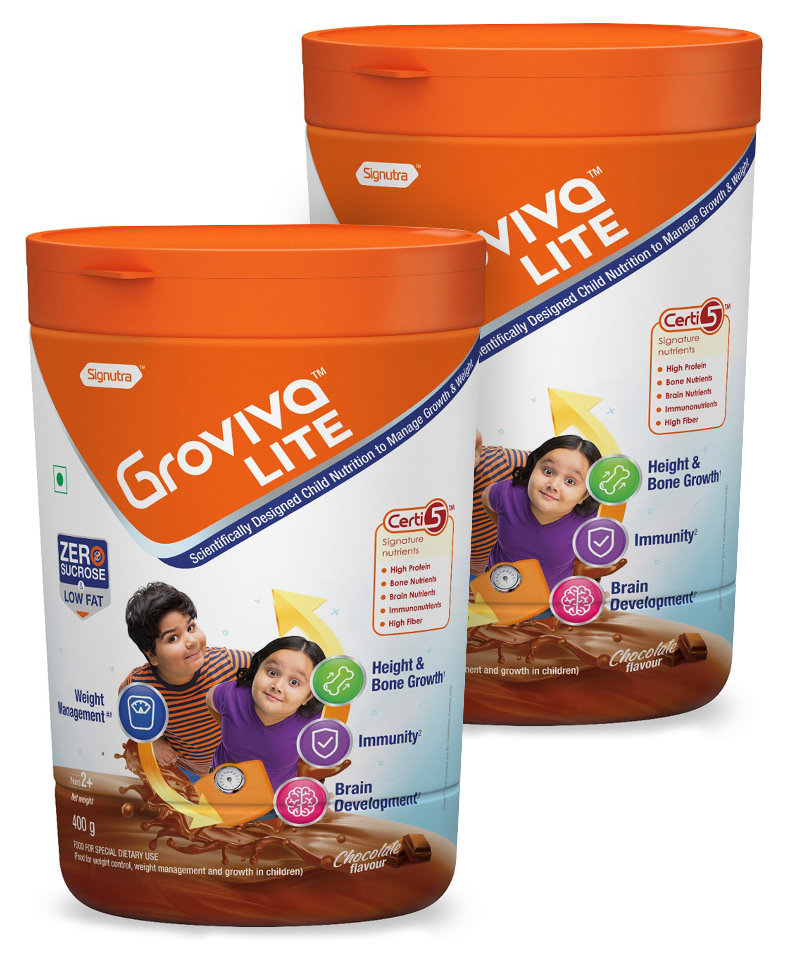 Groviva Lite Chocolate Flavour Nutrition Supplement Jar - 400 gm- Pack of 2
