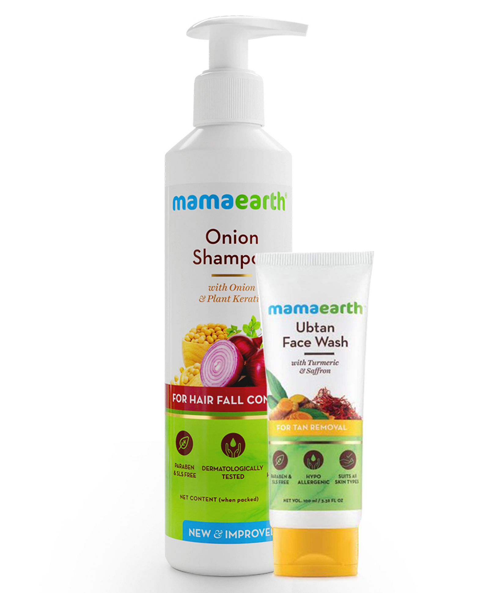 mamaearth Ubtan Natural Face Wash with Turmeric & Saffron - 100 ml AND mamaearth Onion Hair Fall Shampoo with Onion Oil & Plant Keratin - 250 ml