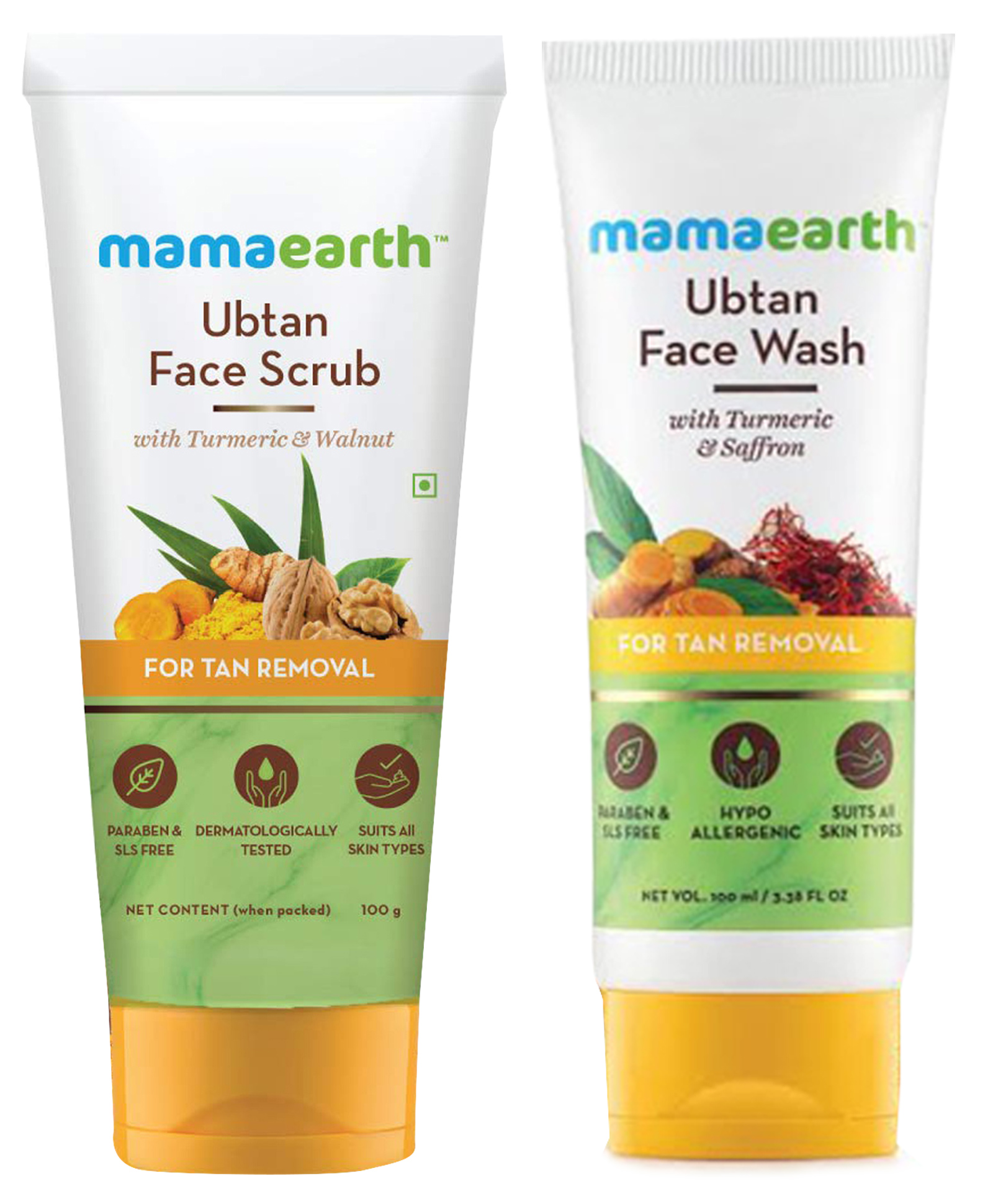 mamaearth Ubtan Natural Face Wash with Turmeric & Saffron - 100 ml AND mamaearth Onion Hair Fall Shampoo with Onion Oil & Plant Keratin - 250 ml