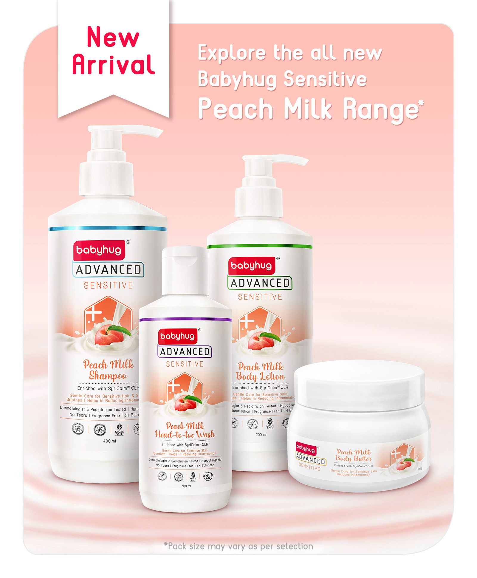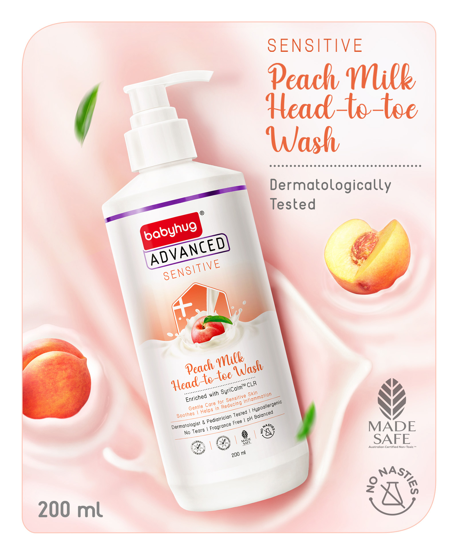 Babyhug Advanced Sensitive Peach Milk Head-to-Toe Wash - 200ml (Pack of 3)