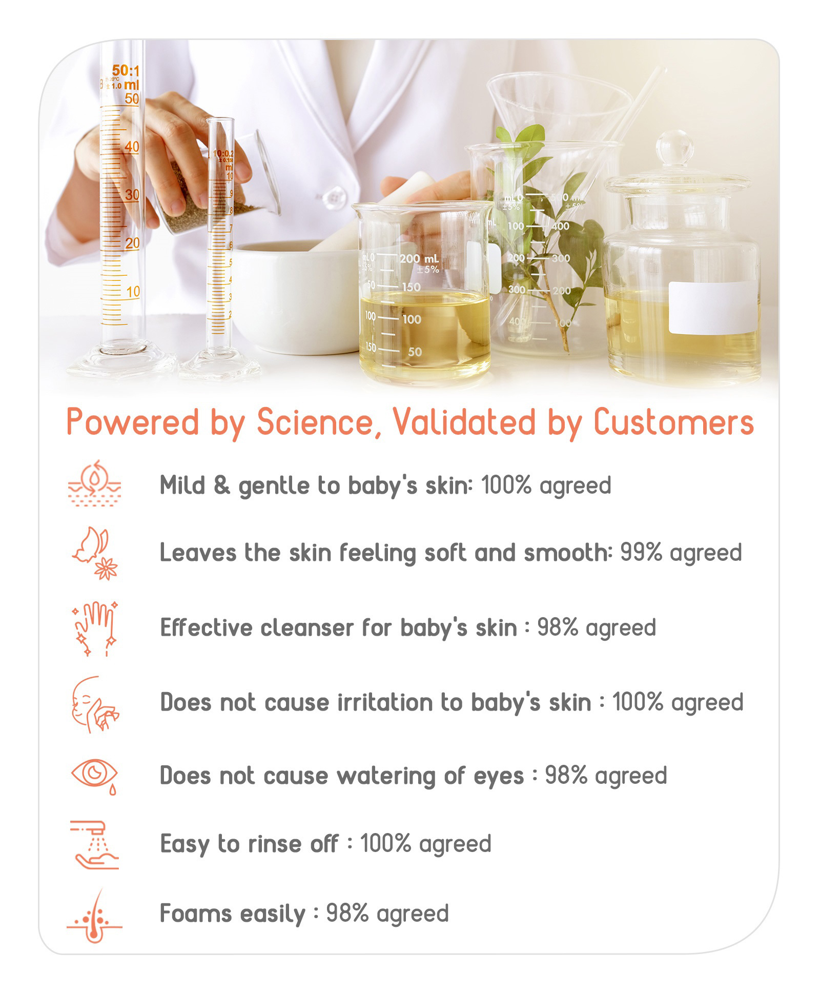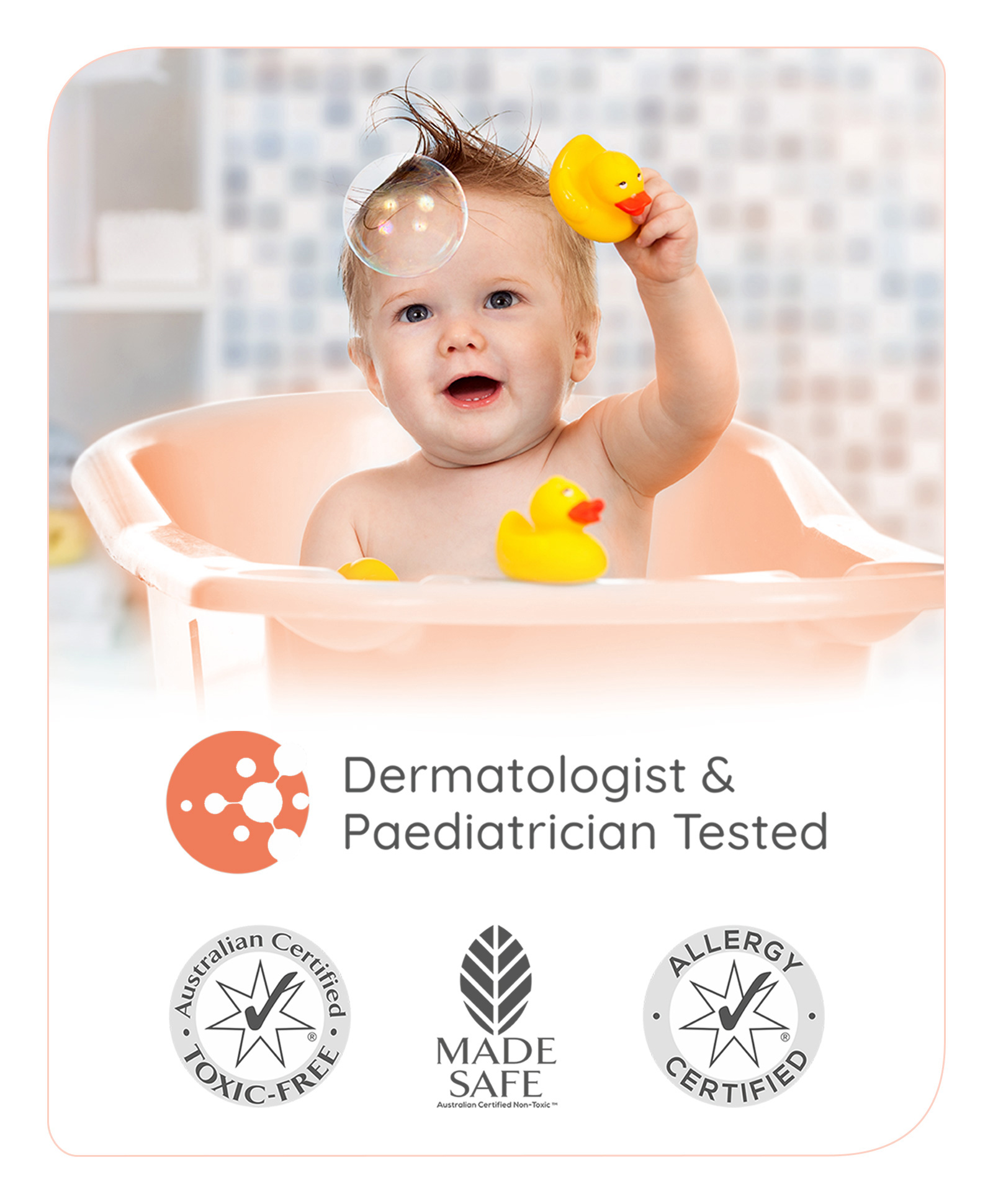 0 Months +, made with Natural Peach Milk and Colloidal Oatmeal which together cleanse baby's skin and scalp, without making it dry