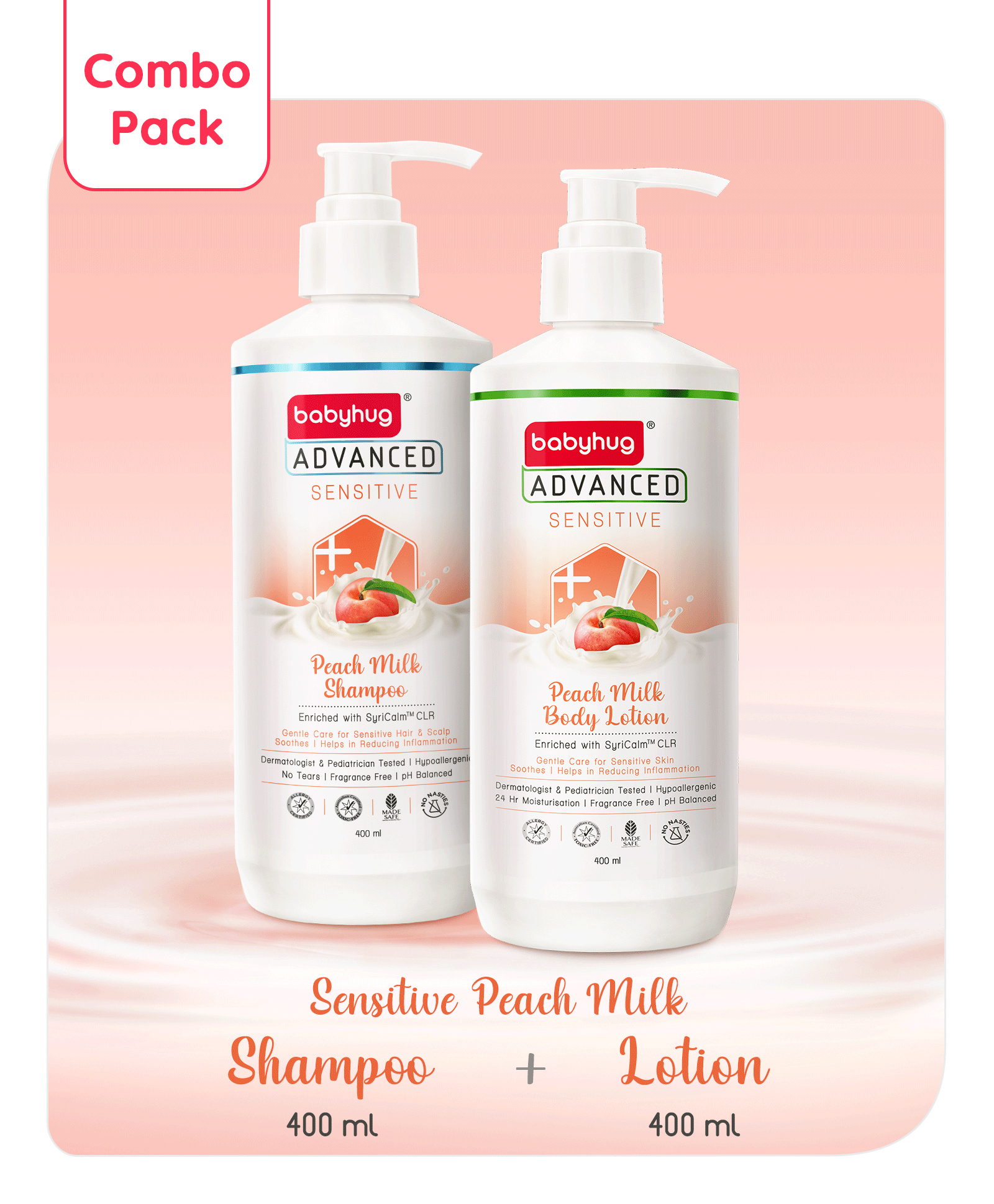 Babyhug Advanced Sensitive Peach Milk Combo of Baby Lotion - 400ml & Shampoo - 400ml
