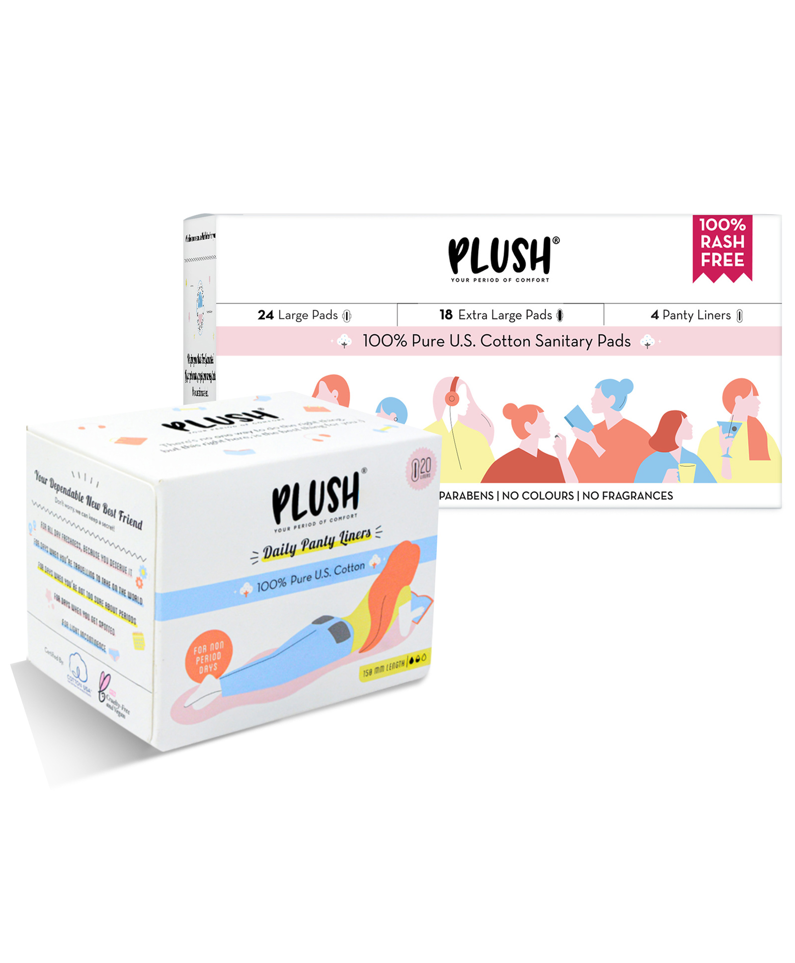 Buy Plush Rash Free Large & XL Sanitary Pads - 42 Pads & Plush 100 Percent US Pure Cotton Daily Panty Liner - 20 Pieces Online at FirstCry.com