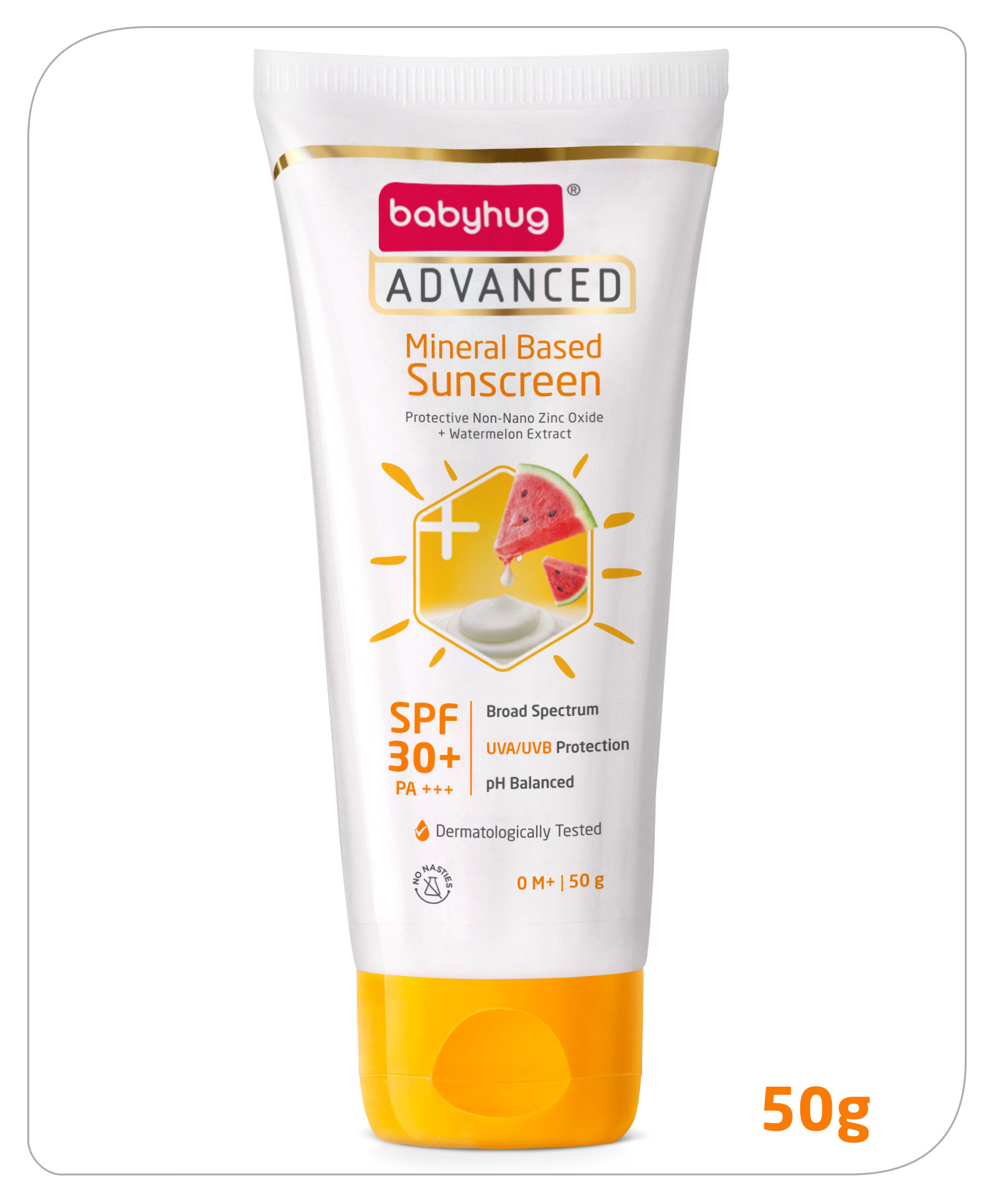 Babyhug Advanced Mineral Based Sunscreen with SPF 30 + & PA+++ & Broad Spectrum Protection and No White Cast - 50 g