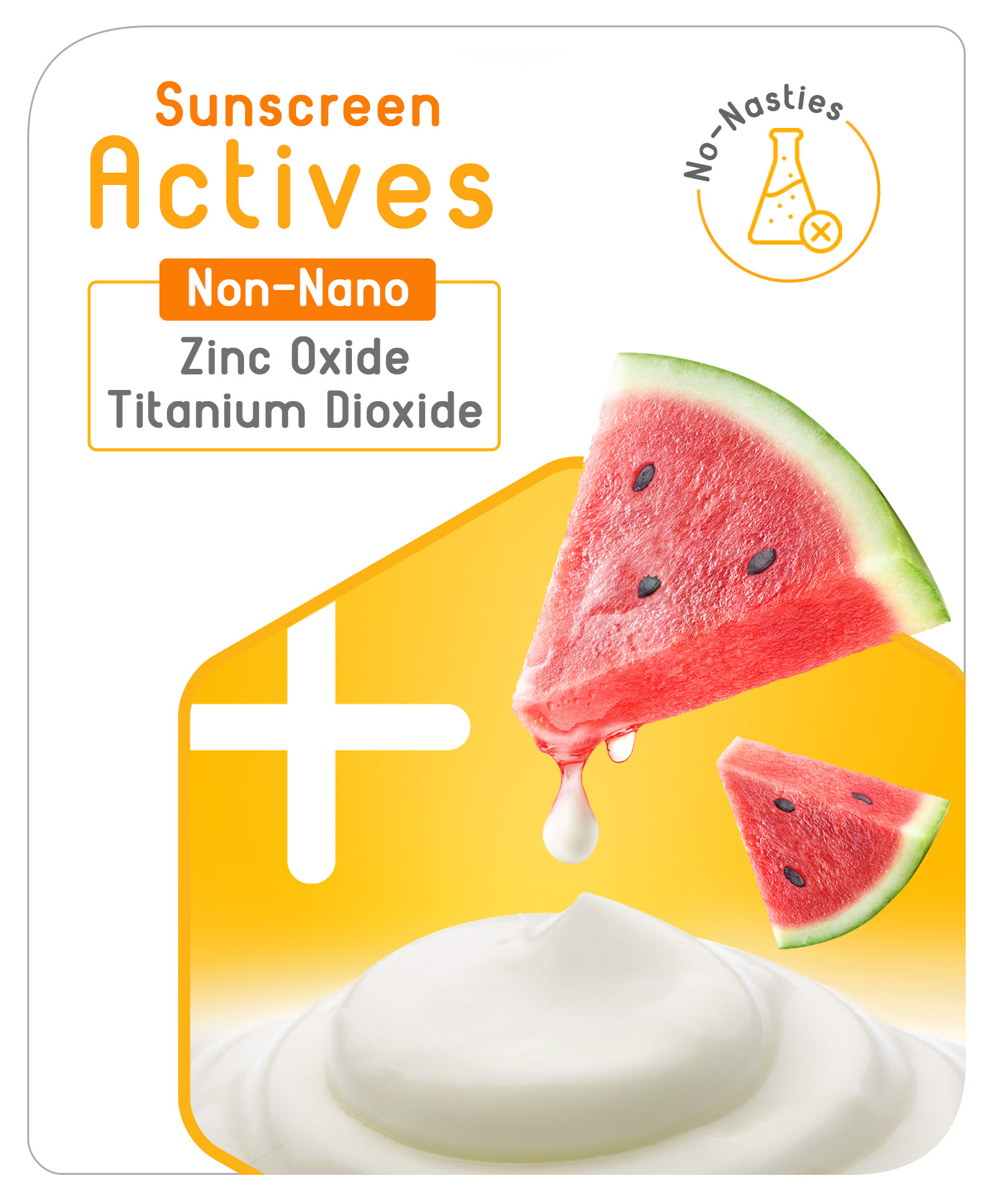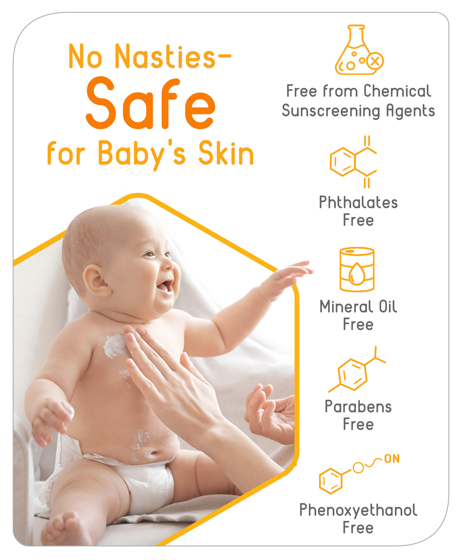 0 Months + , This sunscreen is dermatologically tested and also it dosen't show any white cast on the skin