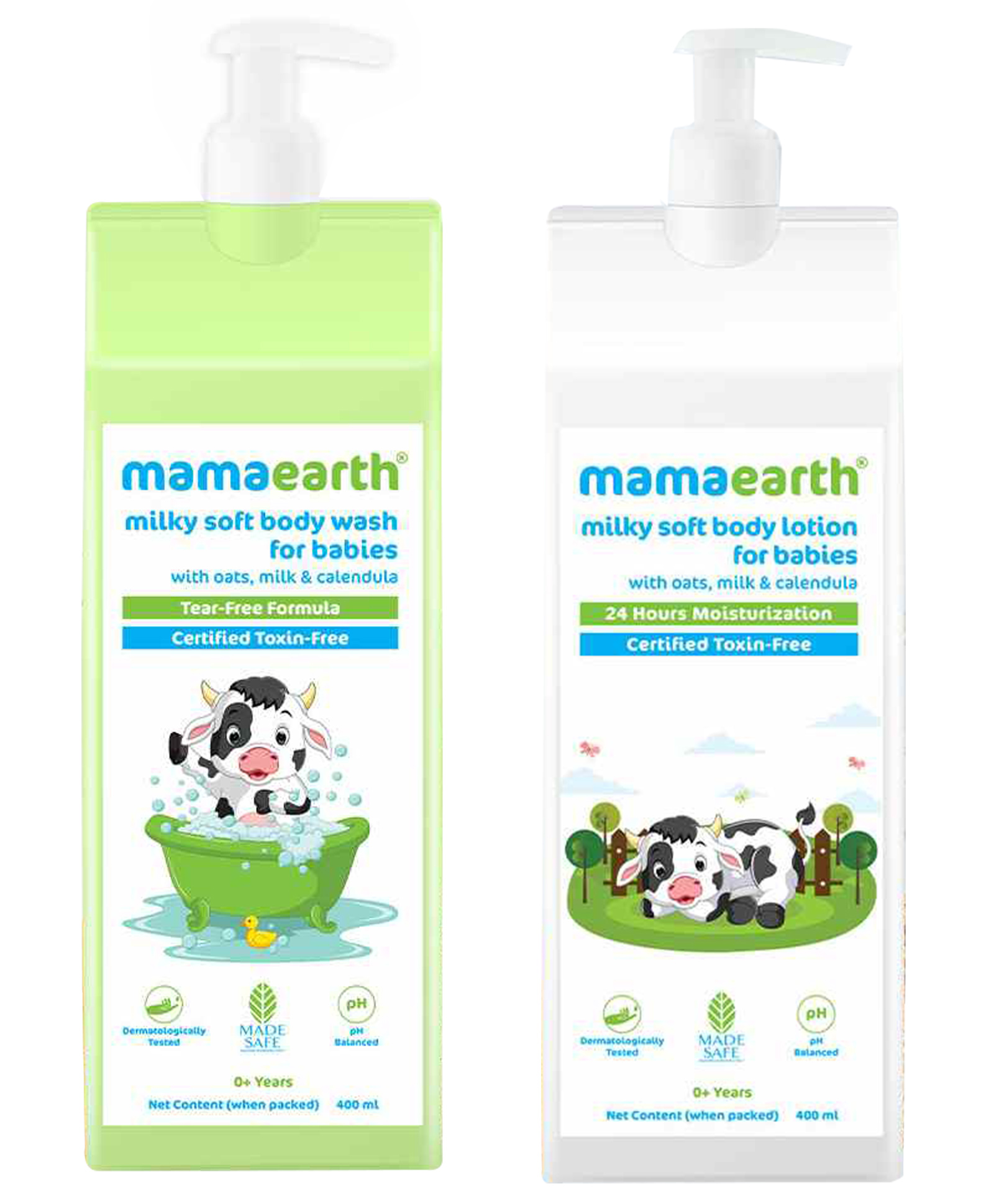 Mama Earth Baby Milky Soft Body Wash & Body Lotion - 400 ml each