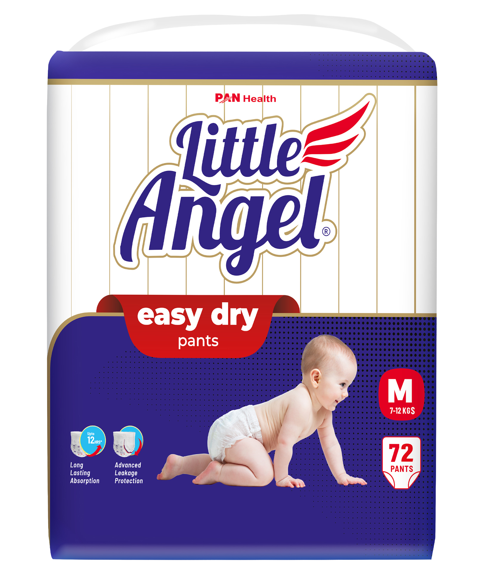 Little Angel Easy Dry Diaper Pants with 12 hrs absorption Medium (M) Size 72 Count, 7-12 Kgs - M (72 Pieces)