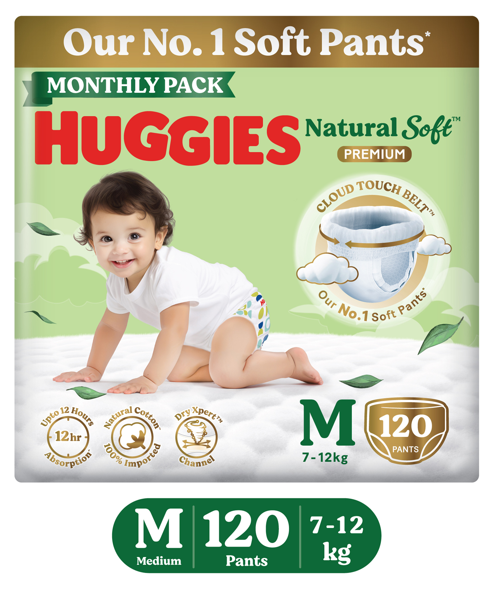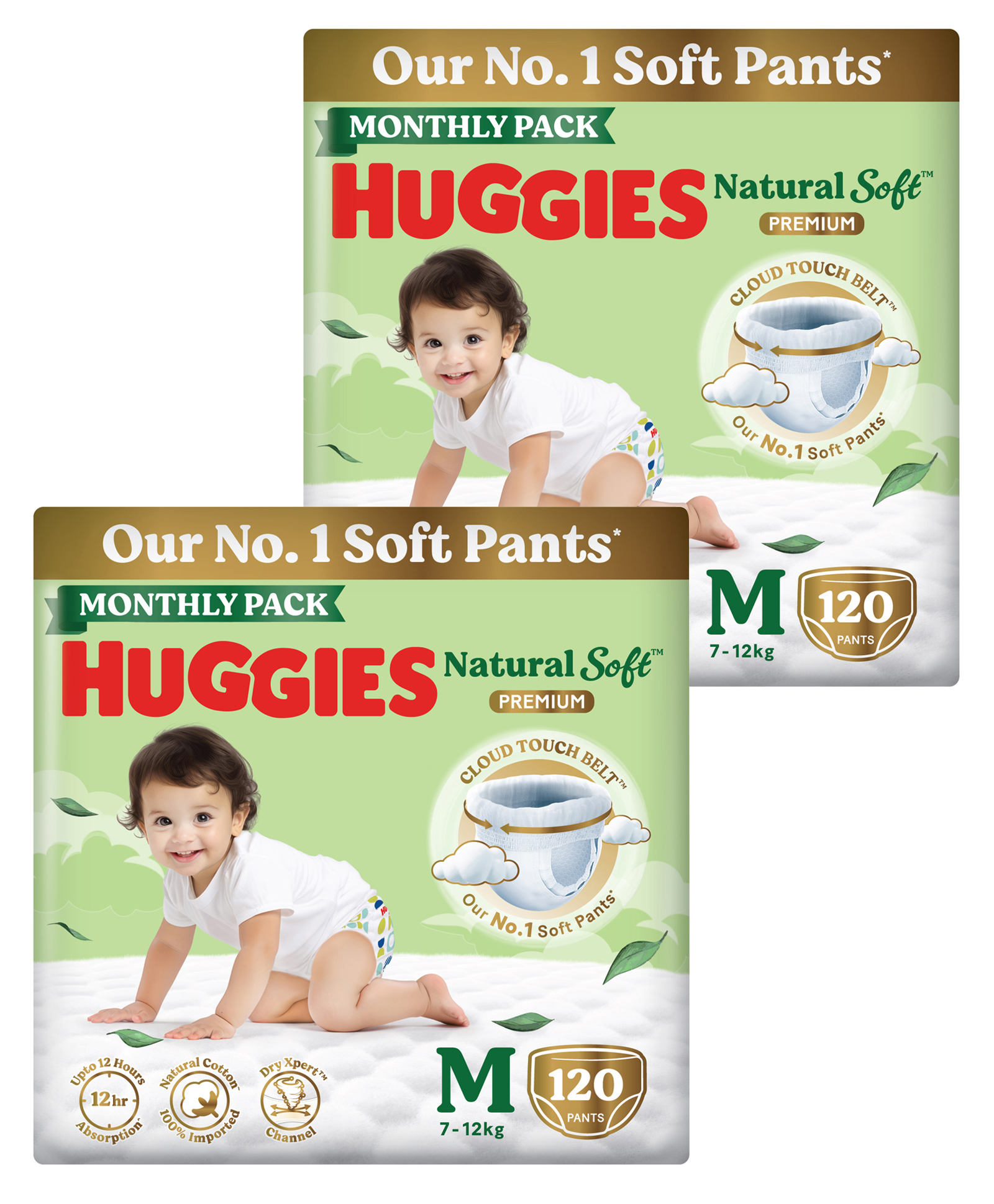 Huggies Natural Soft Premium Baby Diaper Pants Medium - 120 Pieces - (Pack of 2)