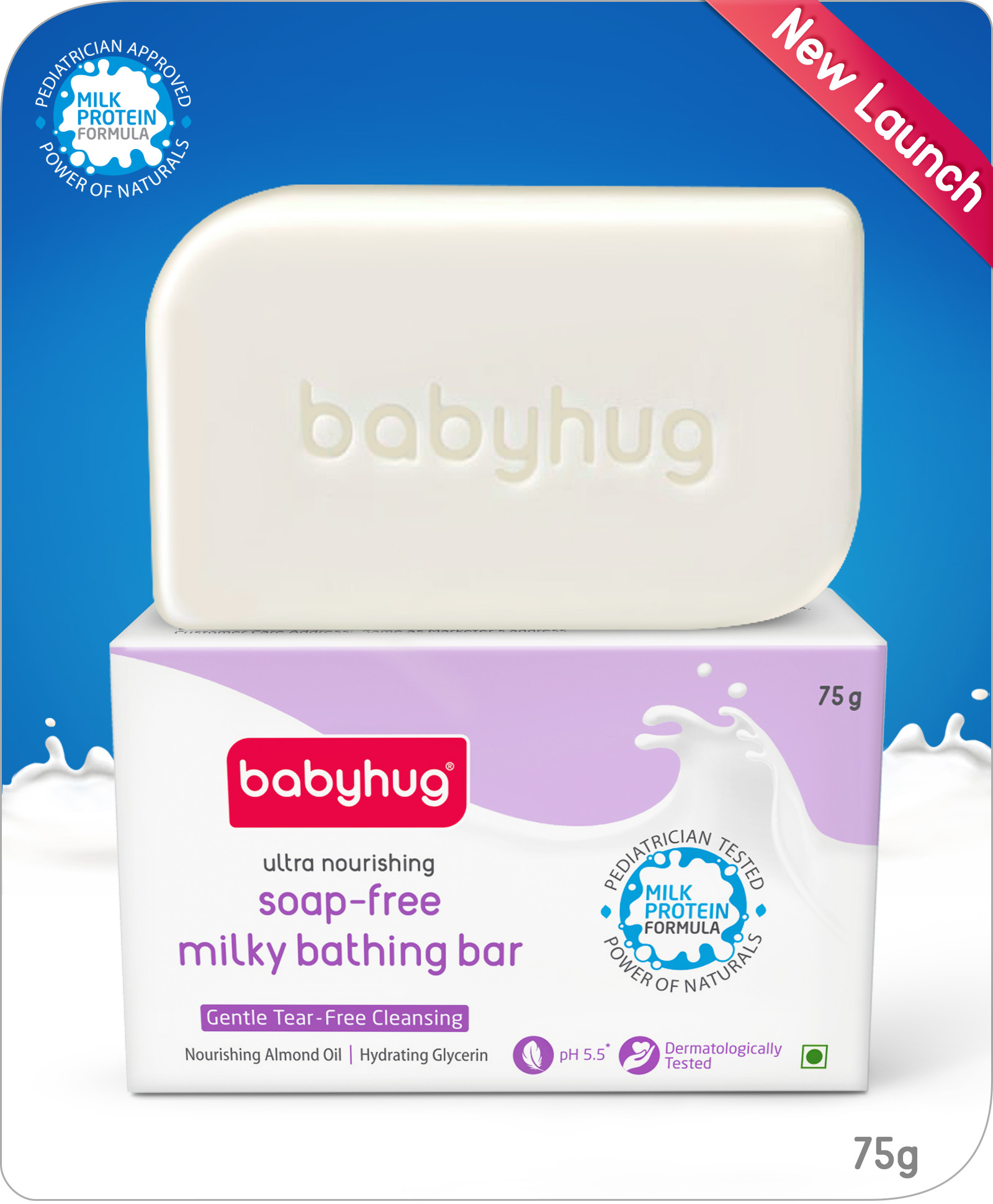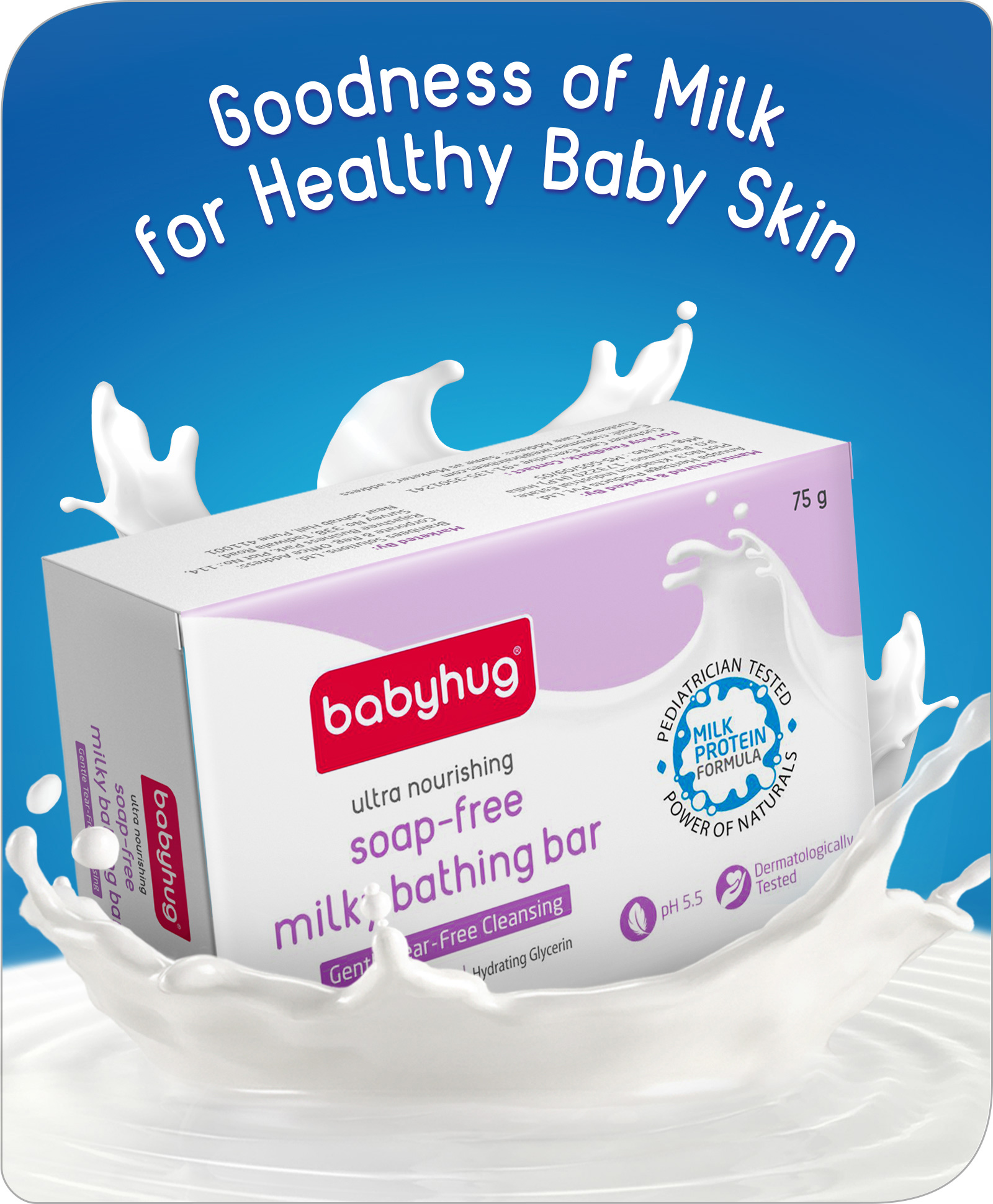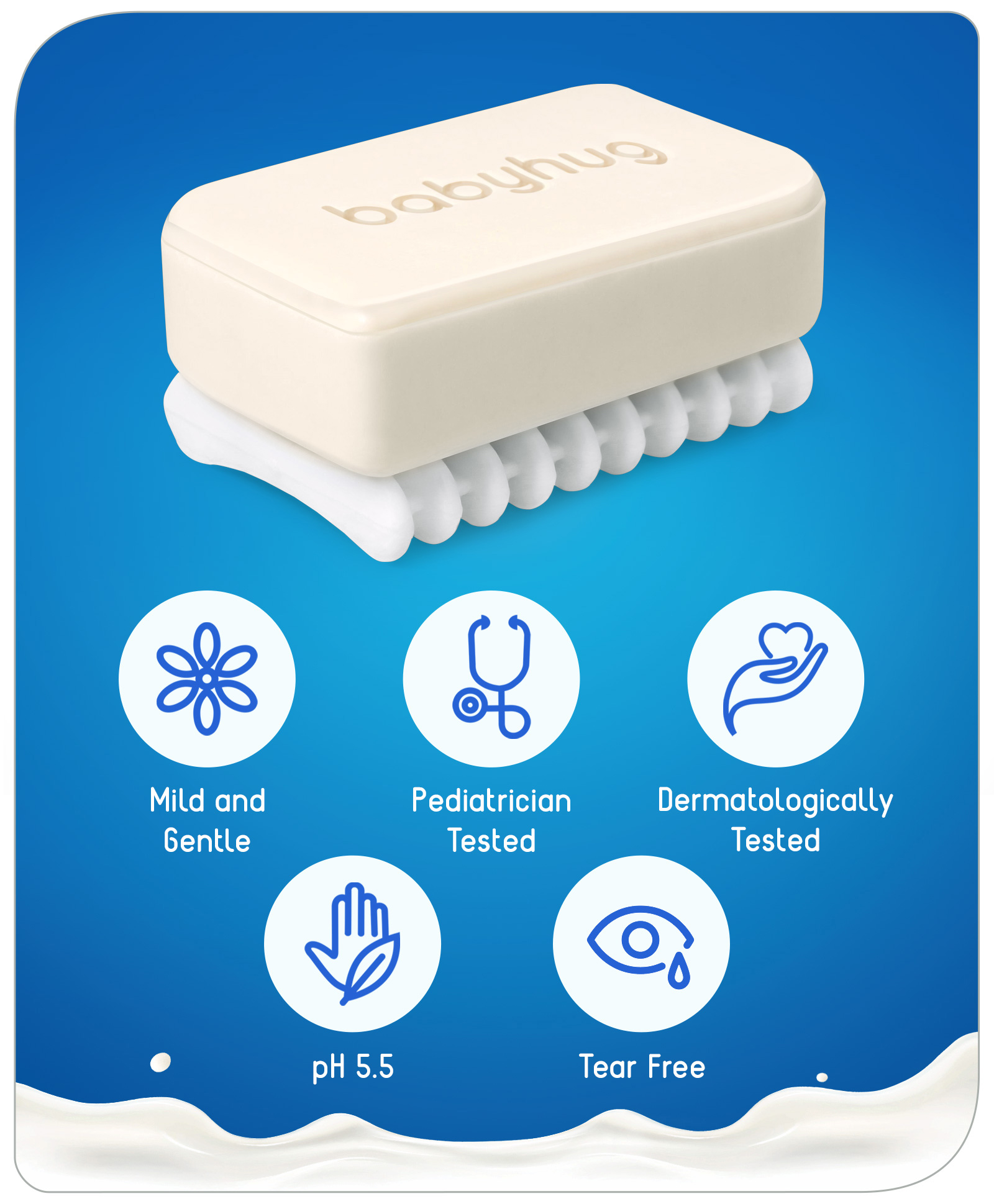 Babyhug pH 5.5 Ultra Nourishing Soap-Free Milky Bathing Bar - 75 g |Free Soap Tray |Does not Dry Skin|Prevents Rashes | Dermatologically & Pediatrician Tested|Extra Mild | Gentle Tear-free Cleansing