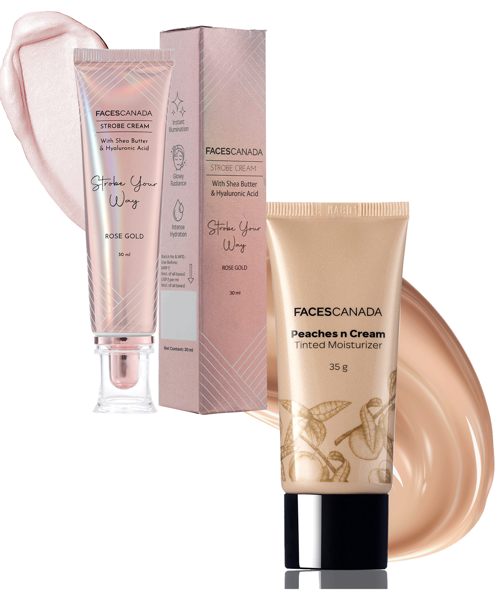 FACES CANADA Glow Getter Makeup Kit - Rose Gold Strobe Cream (30ml) & Peaches N Cream Tinted Moisturizer - Light (35g)