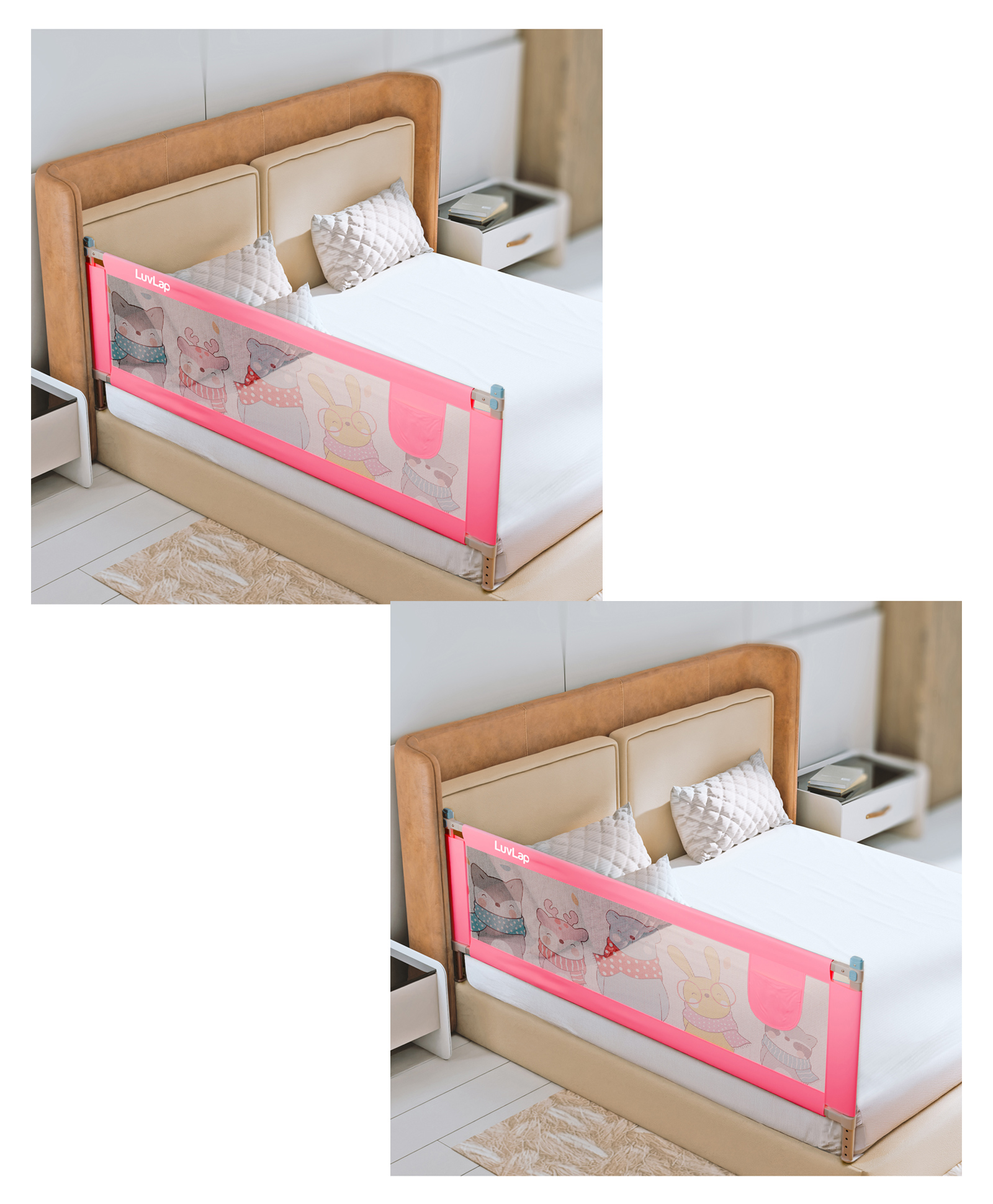 LuvLap Comfy Baby Bed Rail Guard, 6ft x 2.3ft, Portable Bed Fence, Adjustable Height, Single Side Bed Rail for Baby, Printed Pink, 180cm x 72cm