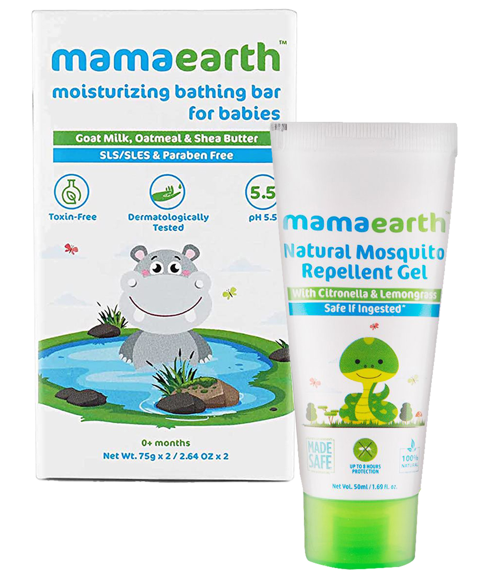 Mamaearth Moisturizing Baby Bathing Soap Bar Pack Of 2 - 75gm & Natural Mosquito Repellent Gel - 50 ml