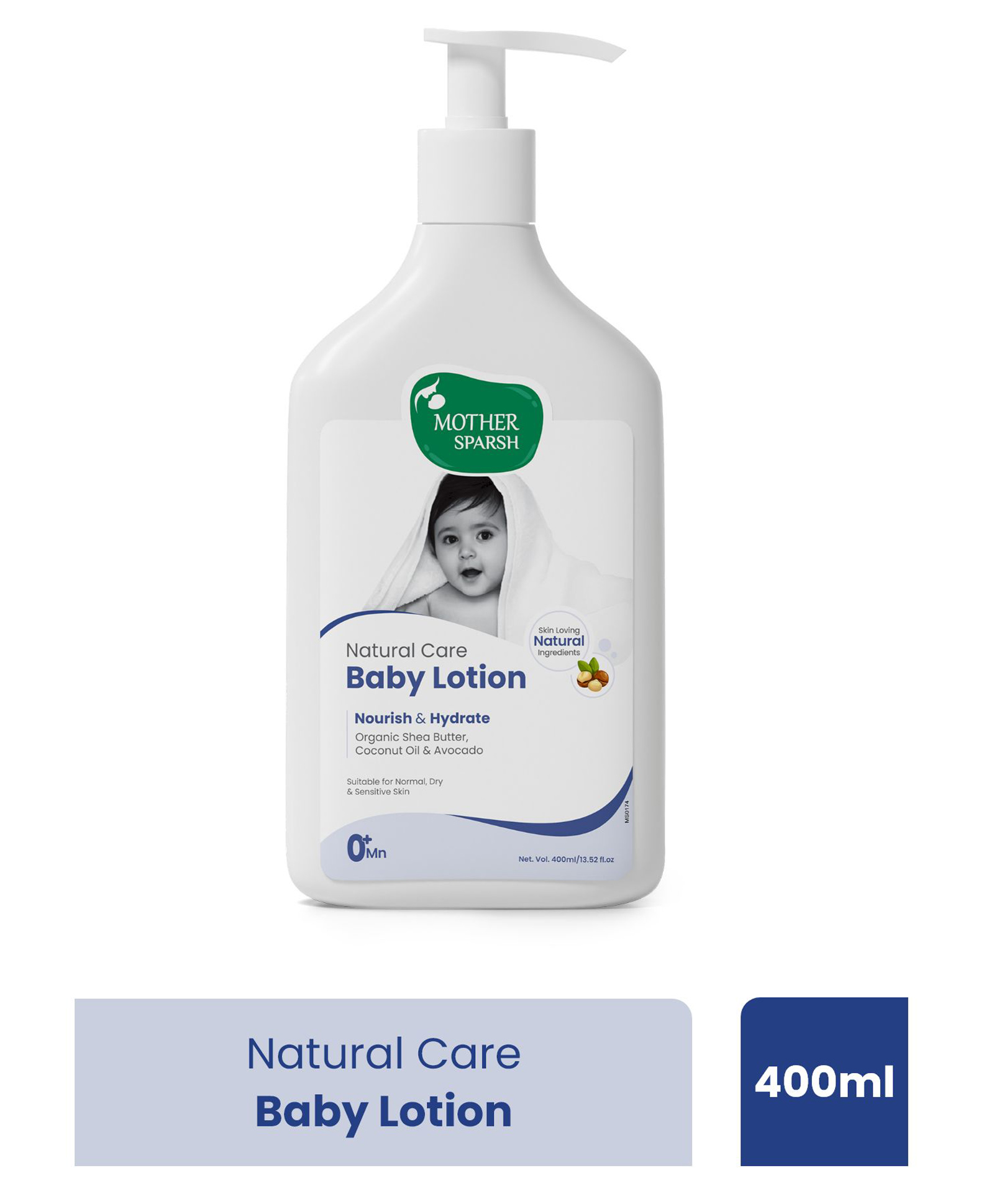 Mother Sparsh Natural Care Baby Body Lotion | Baby Lotion For All Skin Types | With Organic Shea Butter, Coconut Oil & Avocado | Suitable for Newborn Sensitive Skin - 400 ml
