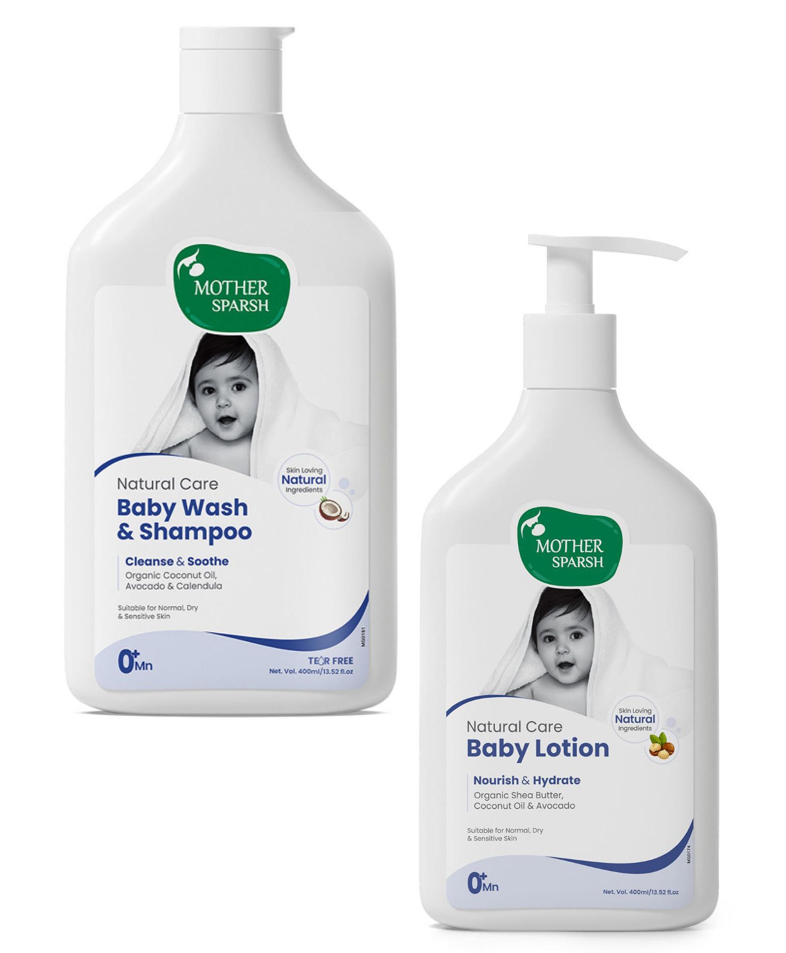 Mother Sparsh Natural Care Baby Body Lotion - 400 ml & Natural Care Baby Wash & Shampoo - 400 ml