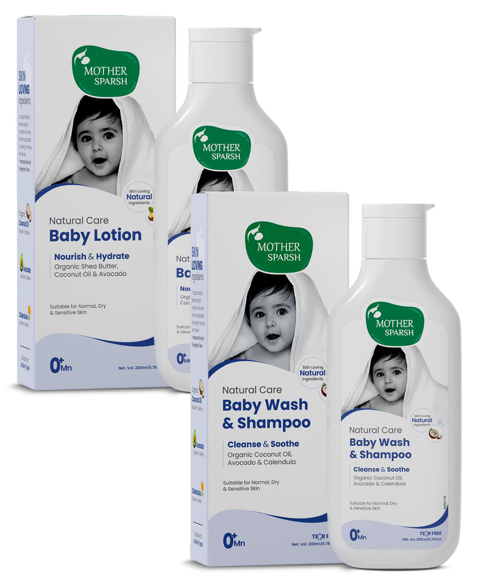 Mother Sparsh Natural Care Baby Body Lotion - 200 ml & Natural Care Baby Wash & Shampoo - 200 ml