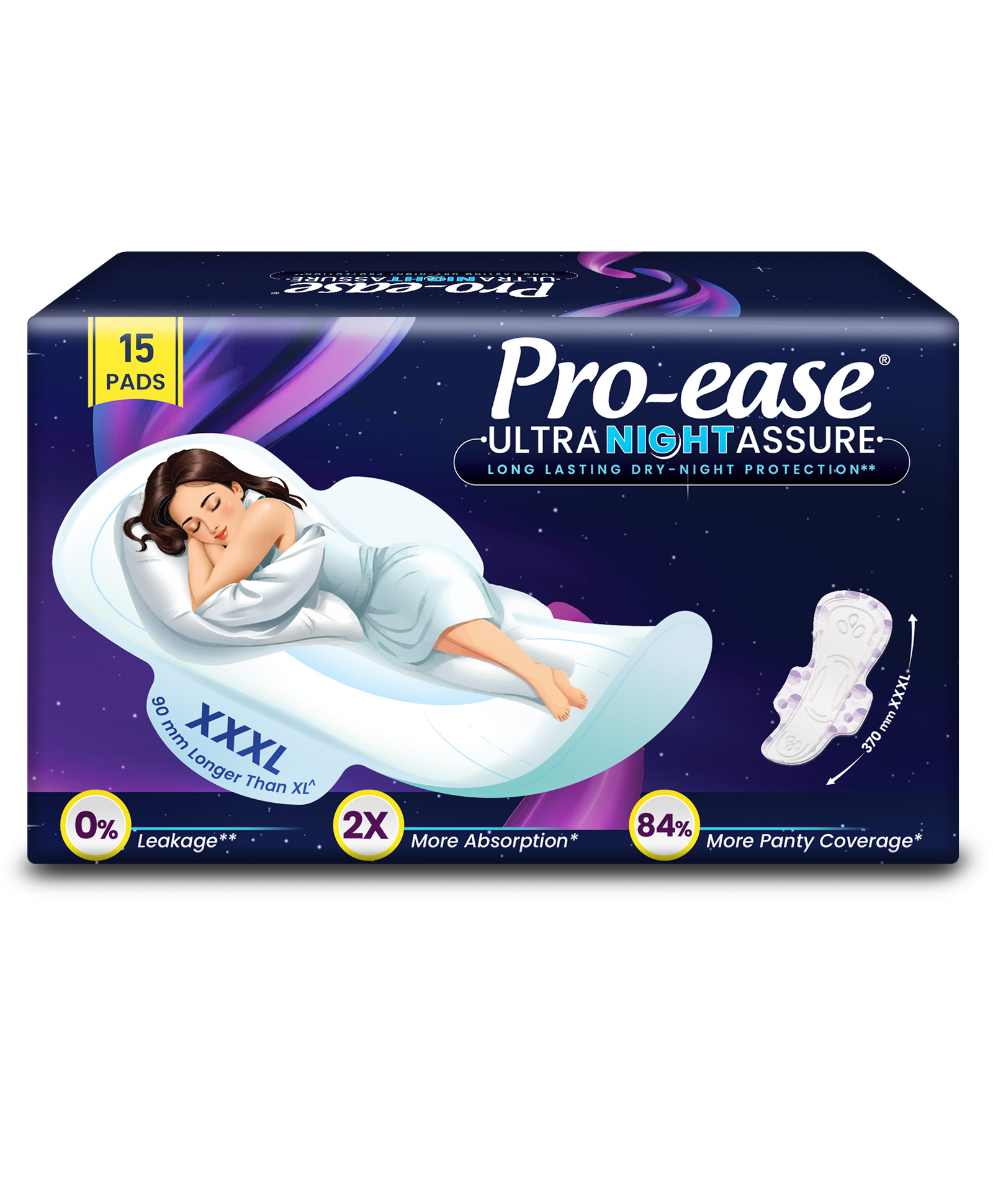 Pro-ease XXXL pads offer 30% more absorbency and 18% more coverage for ultimate comfort and leak-free protection.