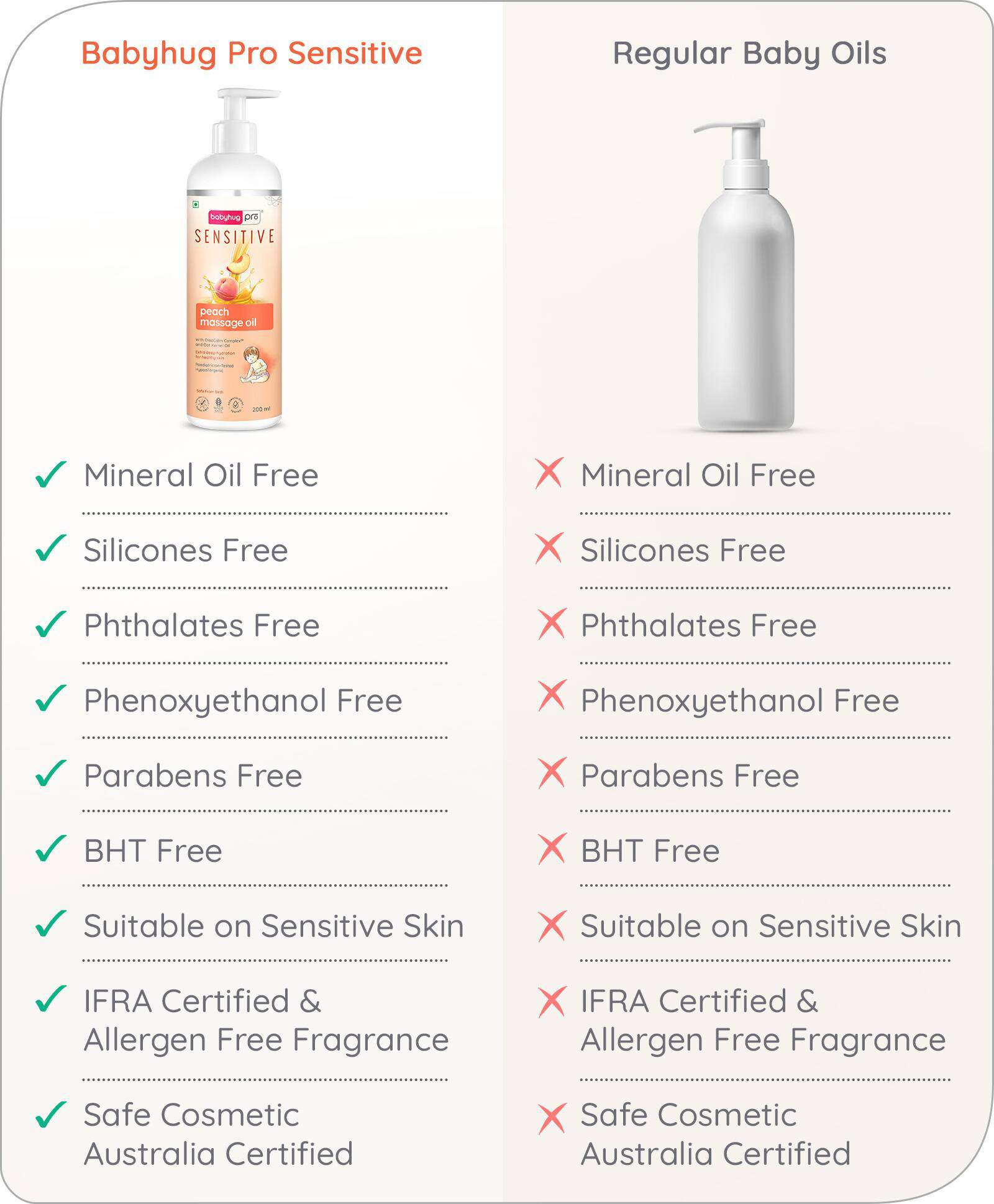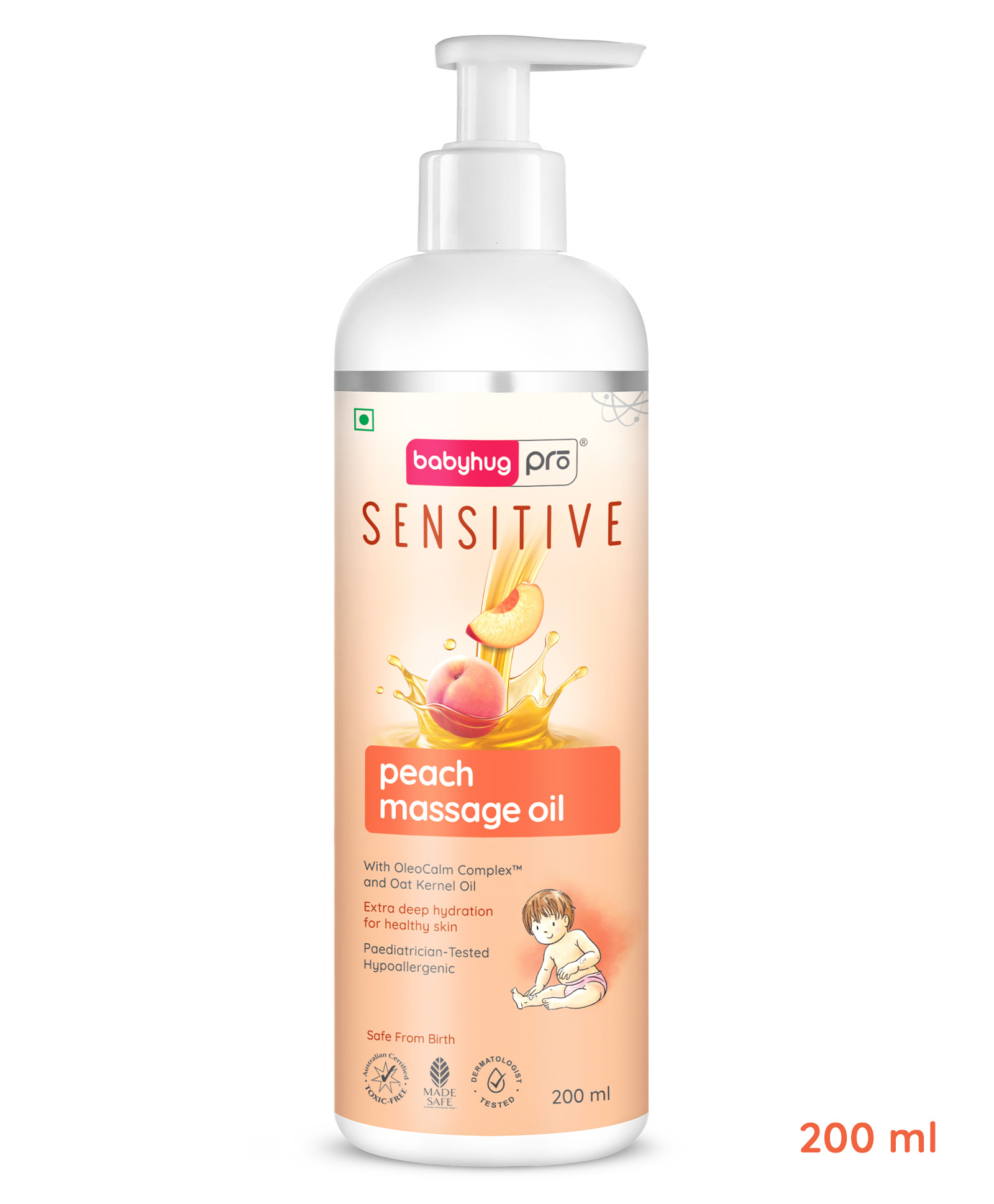 Babyhug Pro Sensitive Peach Massage Oil - 200 ml | With Coconut Oil | Deep Nourishment | Sensitive Skin | Paediatrician & Dermatologist Tested | Safe Hypoallergenic Formula | 0+ m