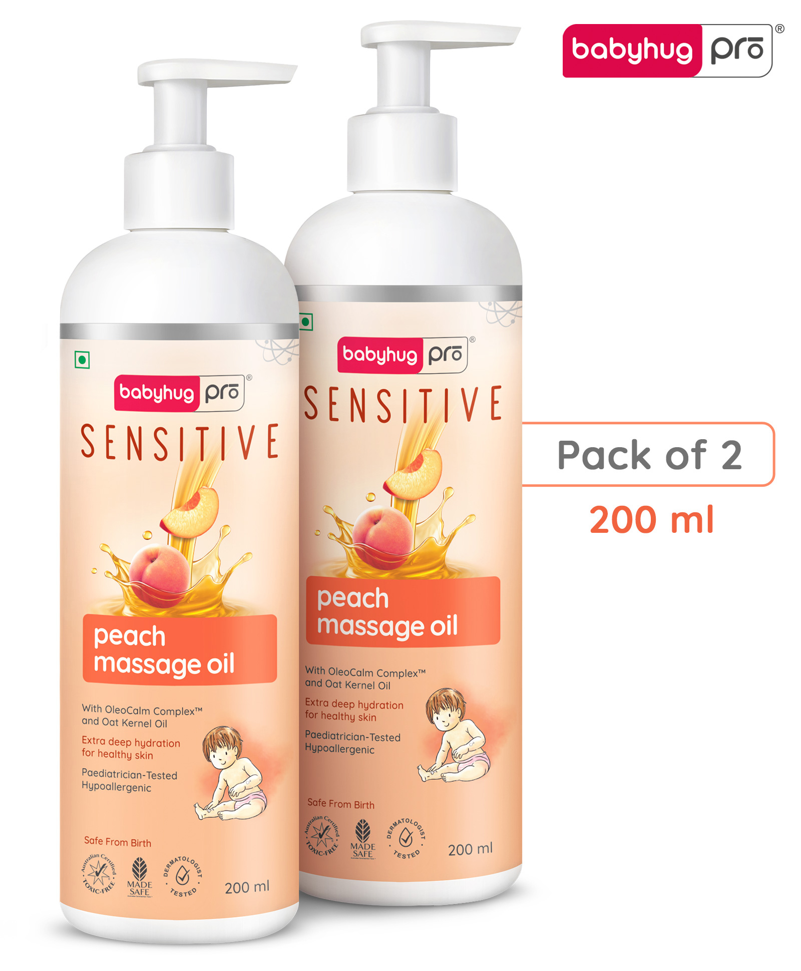 BabyhugPro Sensitive Peach Massage Oil - 200 ml - Pack of 2