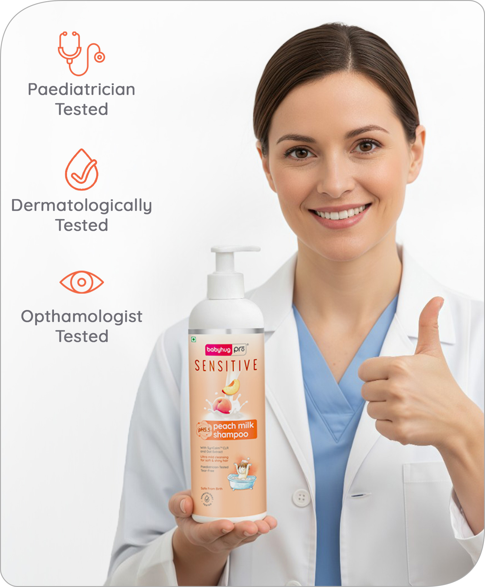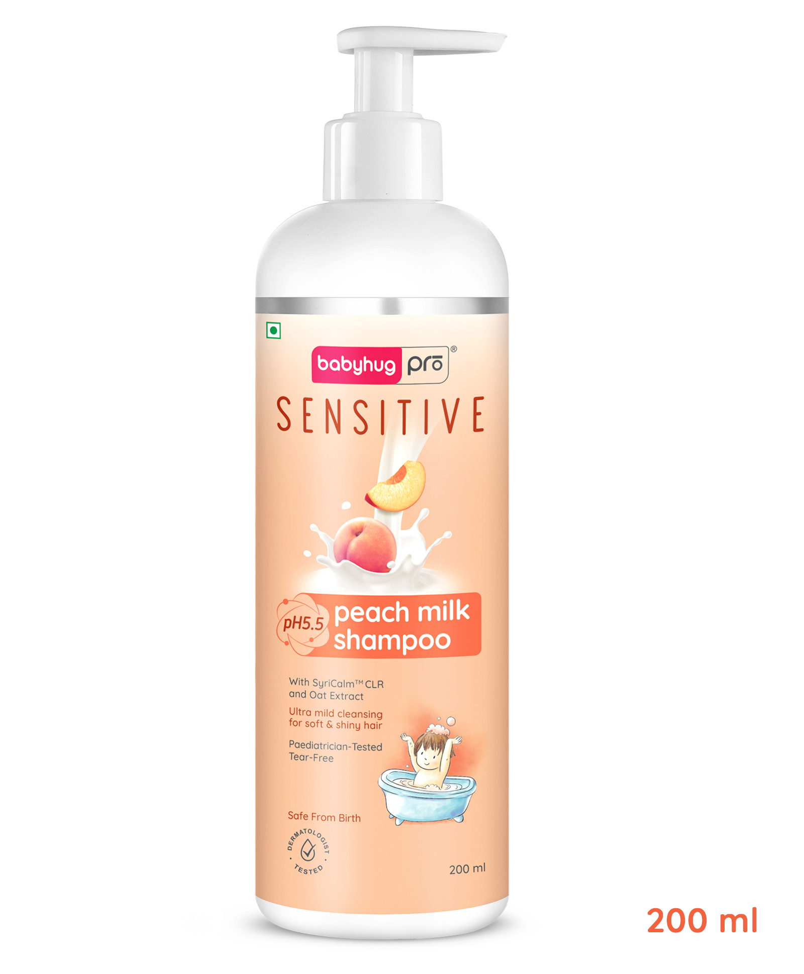 Babyhug Pro Sensitive pH 5.5 Peach Milk Shampoo - 200 ml | No Tears | Mild Cleansing | Soft & Shiny Hair | Easy Rinse Off | Safe Hypoallergenic Formula | Paediatrician & Dermatologist Tested | 0+ m