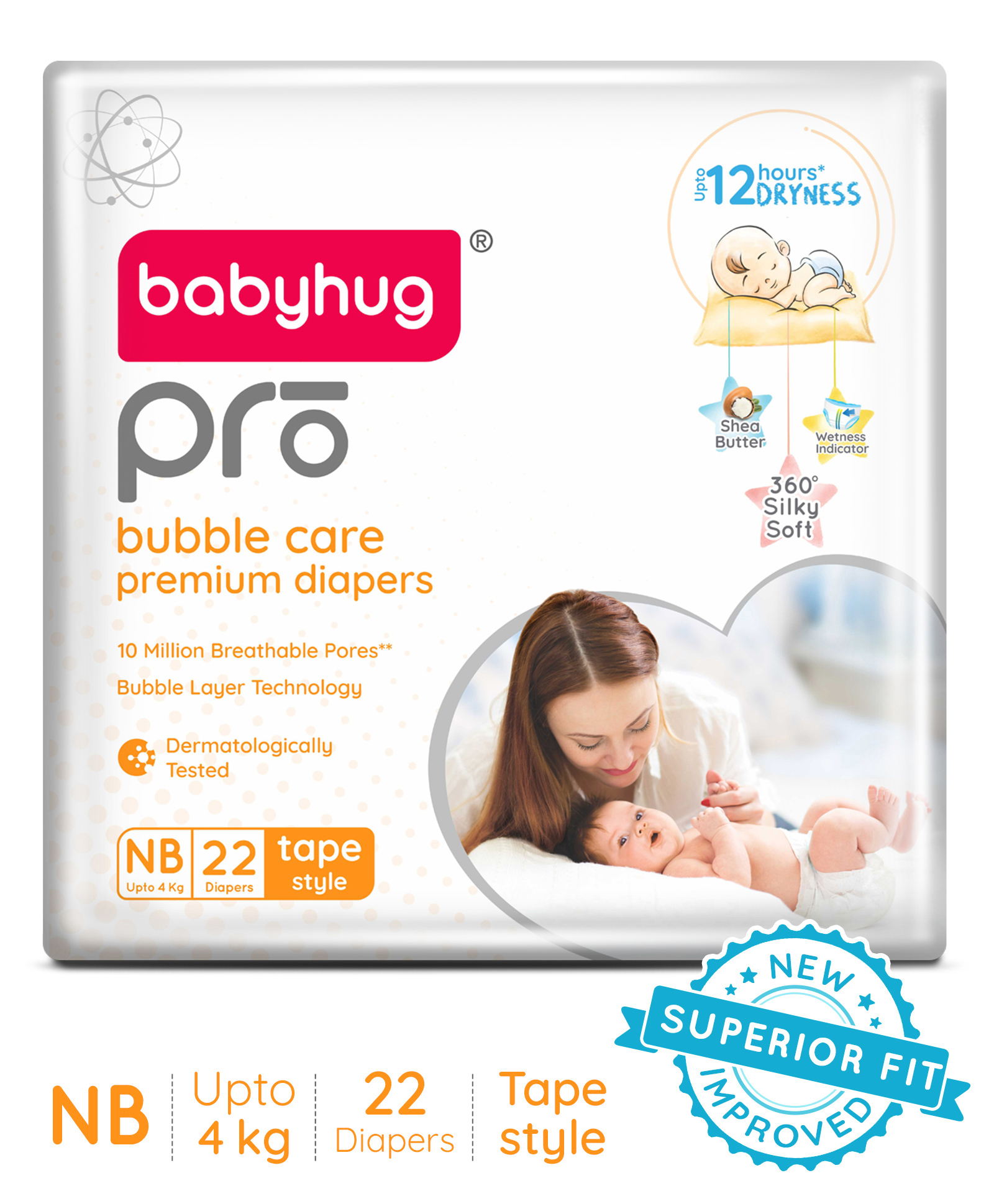 Babyhug Pro Bubble Care Premium Tape Style Diaper for New Born (NB) Size - 22 Pieces - New & Improved Superior Fit