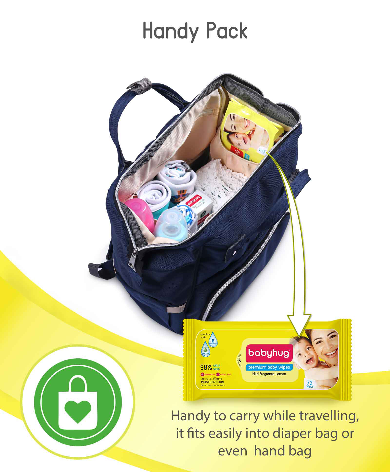 Babyhug Premium 98% Water Baby Wet Wipes with Lemon Scent - 72 Pieces
