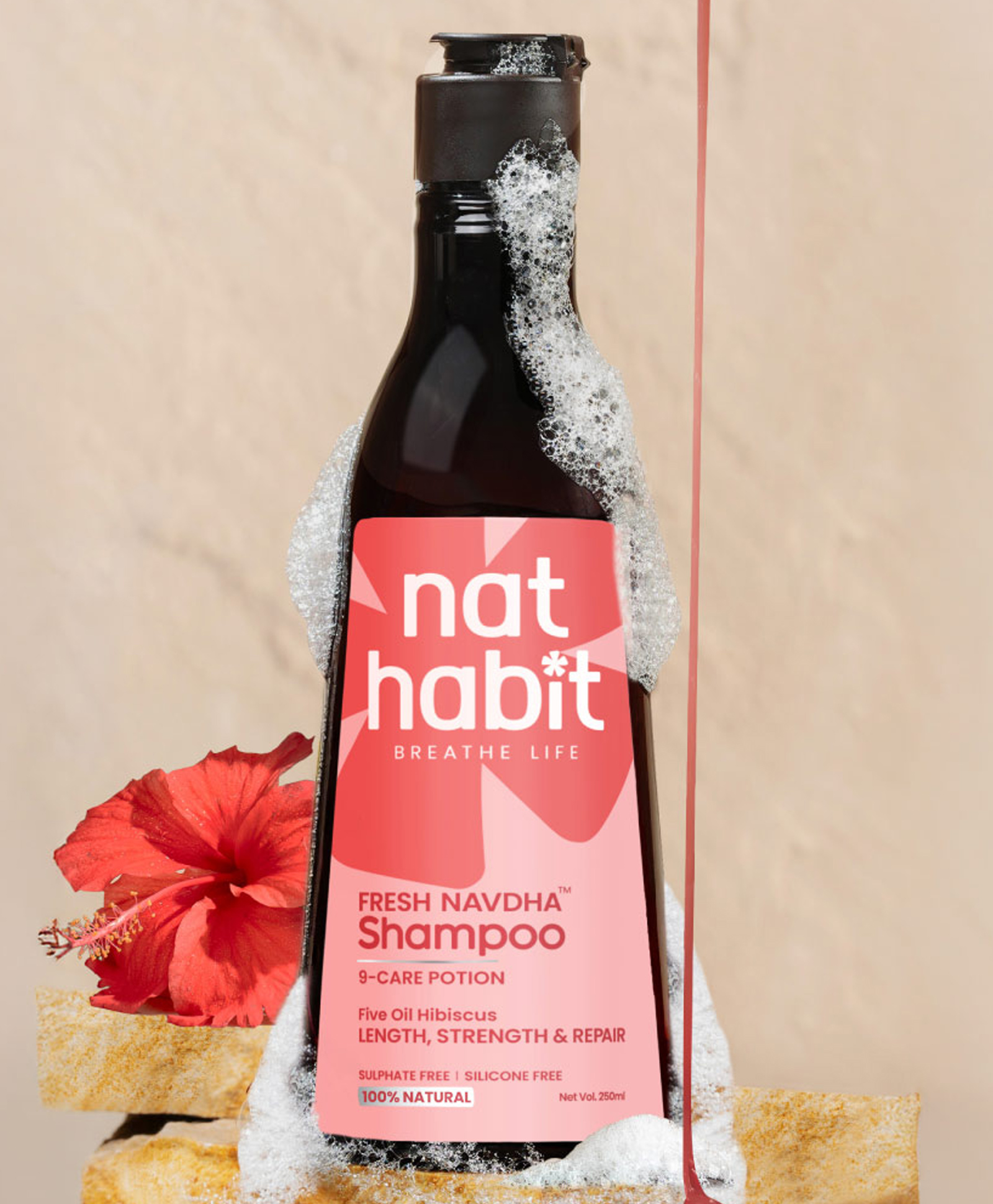 Nat Habit Hibiscus Shampoo with the Power of 5 Oils Promotes Long, Thick Hair & Repairs Damage Naturally 250ml