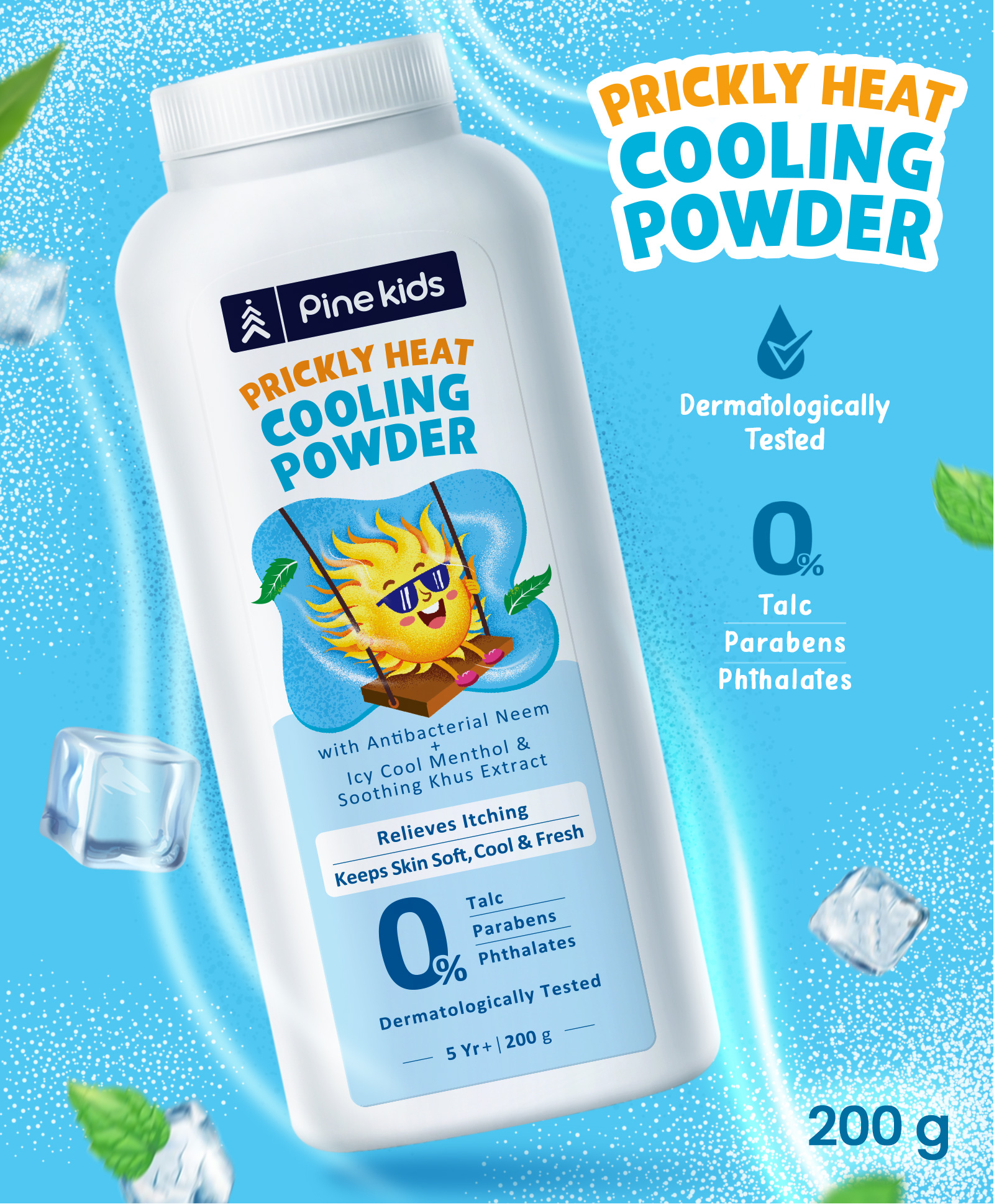 5 Years+,Pine Kids Prickly Heat Cooling Powder,Soothing relief for your child's skin, keeping them cool and comfortable during hot days